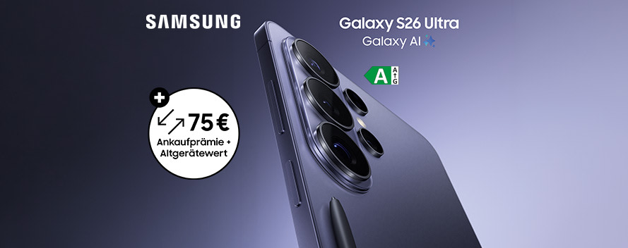 Jetzt die neuen Premium-Geräte aus der Galaxy S26-Serie kaufen und 75,- € Ankaufprämie sichern
