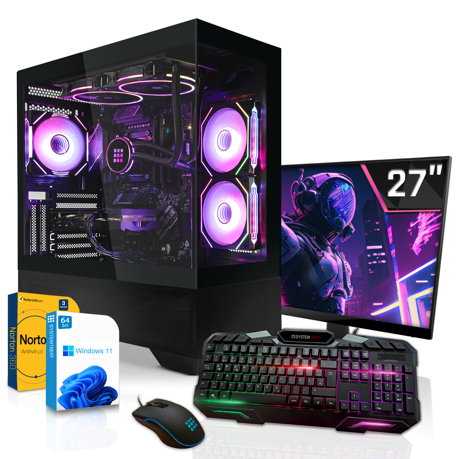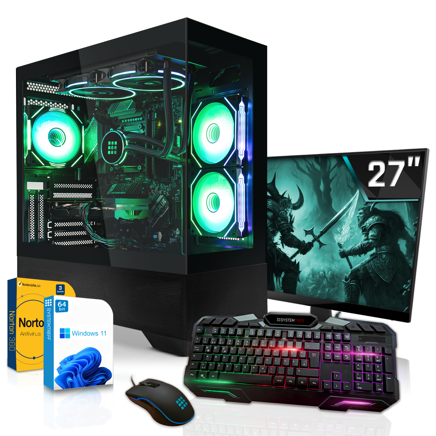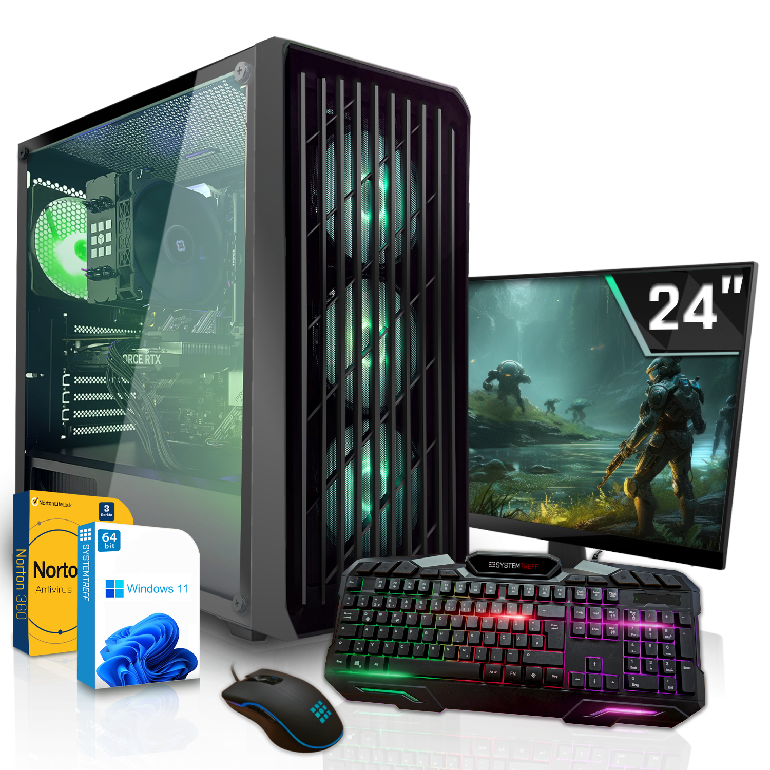 SYSTEMTREFF Gaming Komplett AMD, Komplett PC mit AMD Ryzen™ 5 9500F Prozessor, 16 GB RAM, 512 GB SSD, NVIDIA GeForce RTX™ 3050, Windows 11 Pro