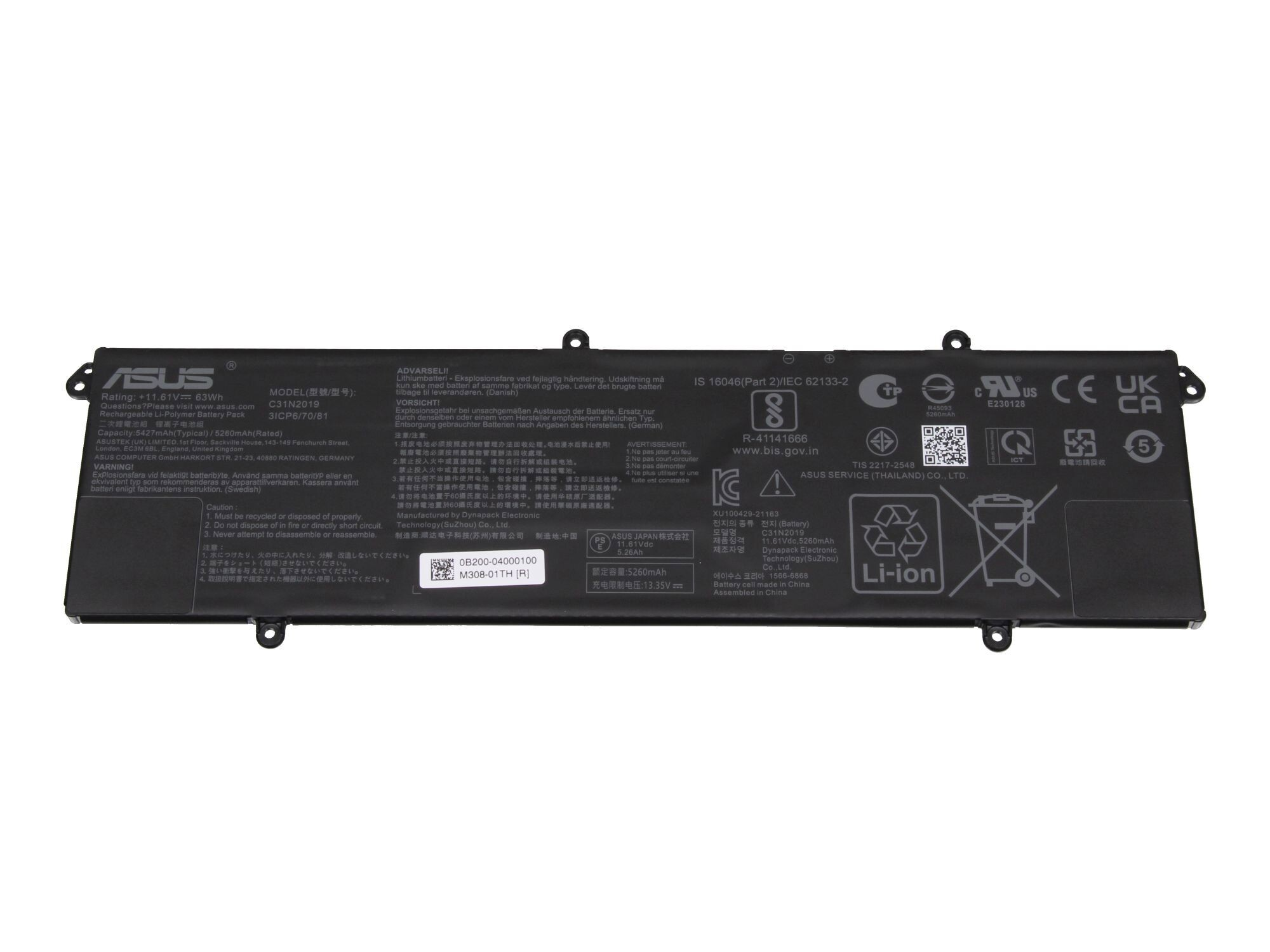 ASUS 0B200-04200000 Original Li-Polymer Akku, 15.48 Volt, 5800 mAh