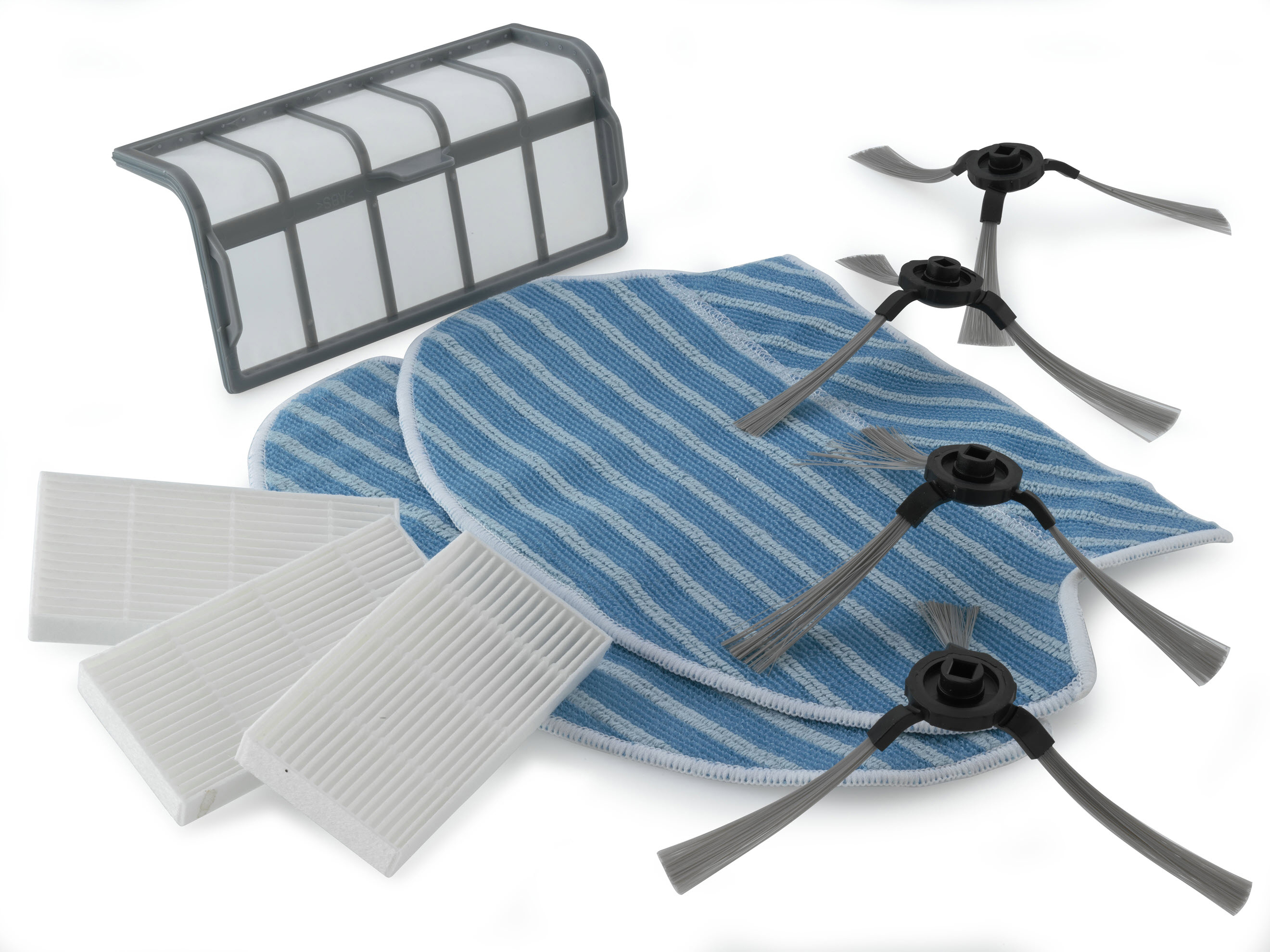 2 x Wischmop, 3 x HEPA-Filter, 4 x Seitenbürsten, 1 x Primärfilter