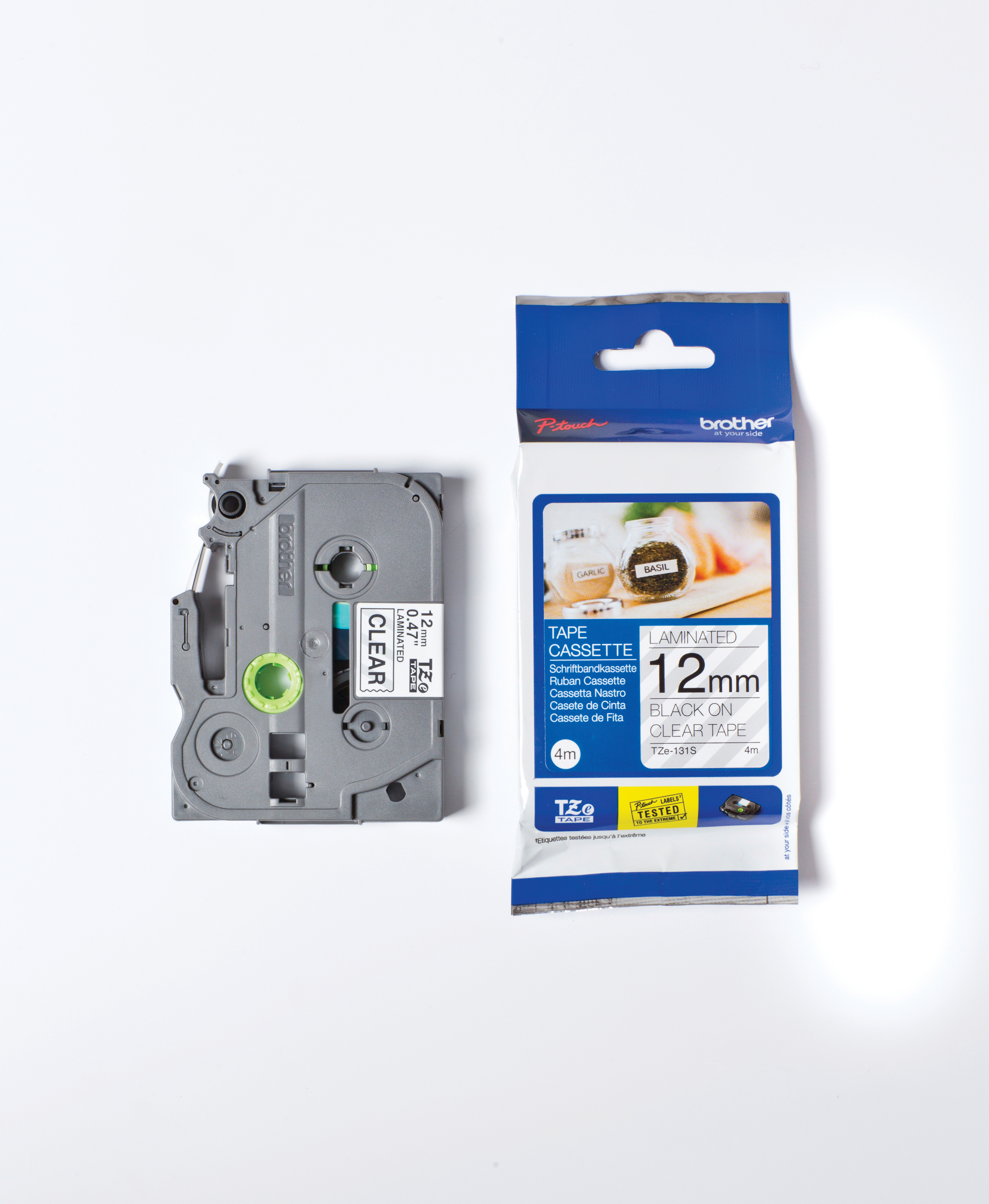 BROTHER TZe-131S Laminiertes Schriftband Schwarze Schrift auf transparentem Hintergrund
