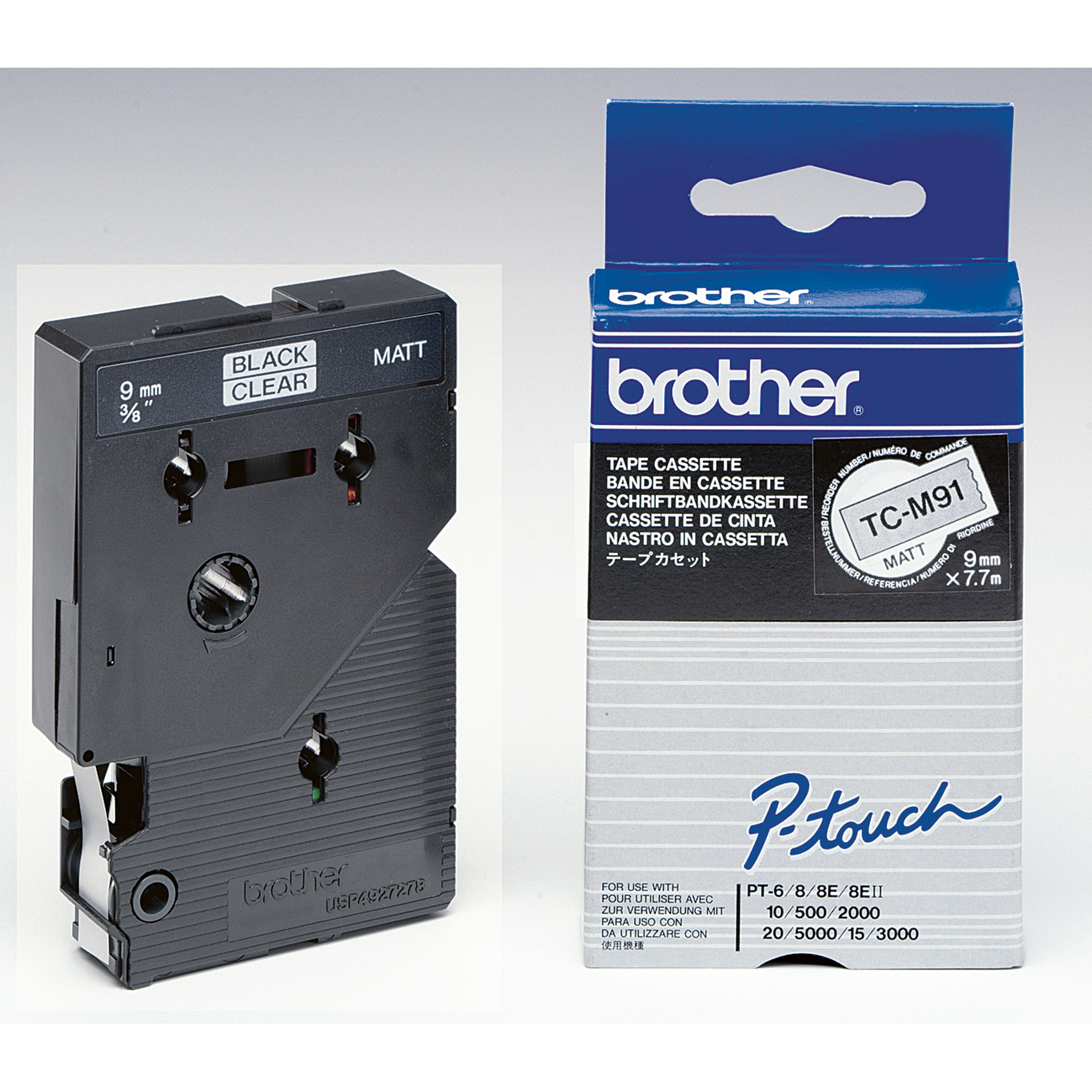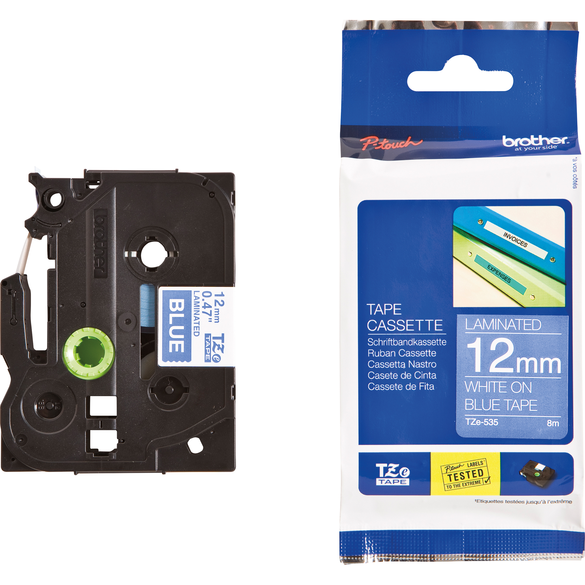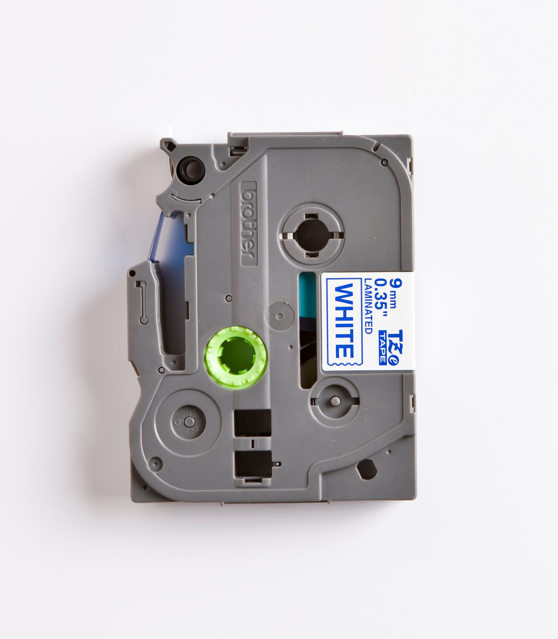BROTHER TZE-223 WEISS/BLAU LAM. 9MM (8M) Laminiertes Schriftband Blaue Schrift auf weißem Hintergrund