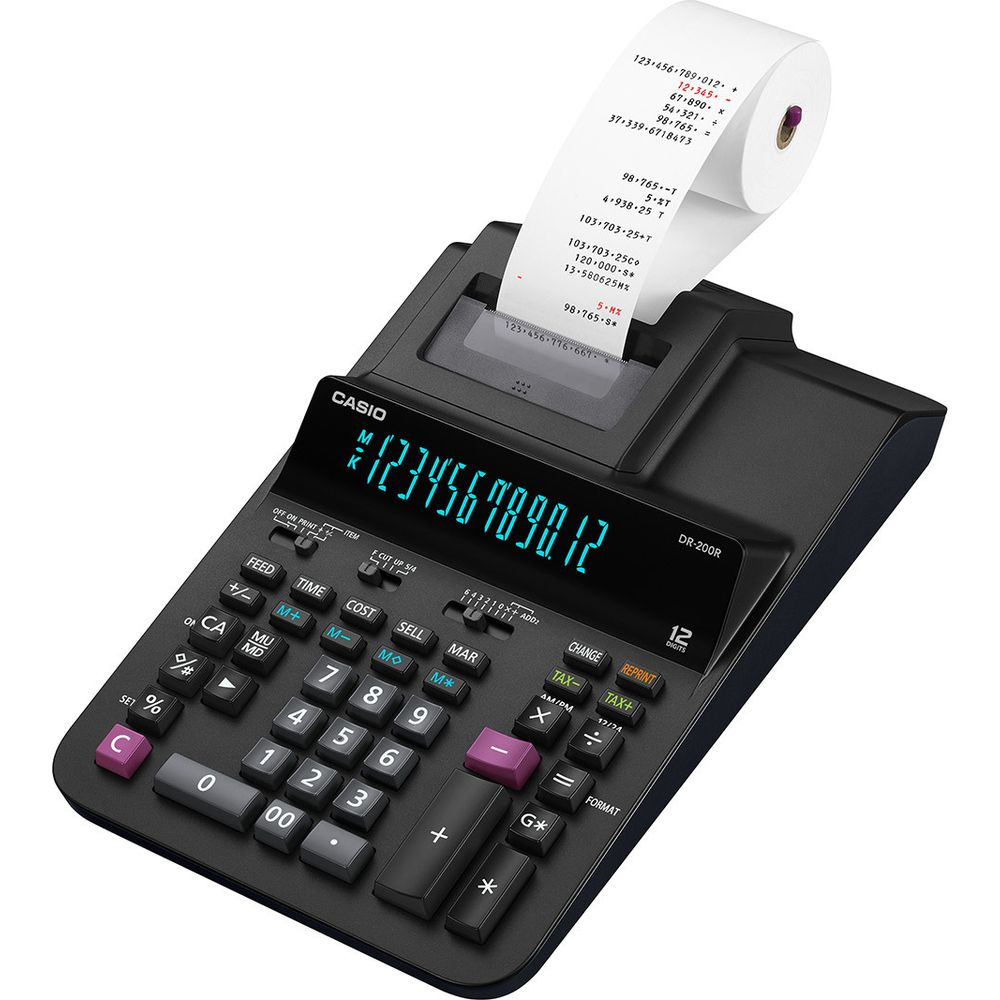 2 farbiger Druck mit 2 Zeilen/Sek. Druckgeschwindigkeit, Profitberechnung, Steuerberechnung, Prozentrechnung, Postenzähler, Zeit- und Datumsdruck/Anzeige