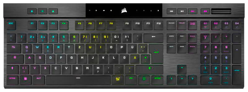 CORSAIR K100 Air wireless, Gaming Tastatur, Mechanisch, Cherry MX Ultra Low Profile, kabellos und kabelgebunden, Schwarz