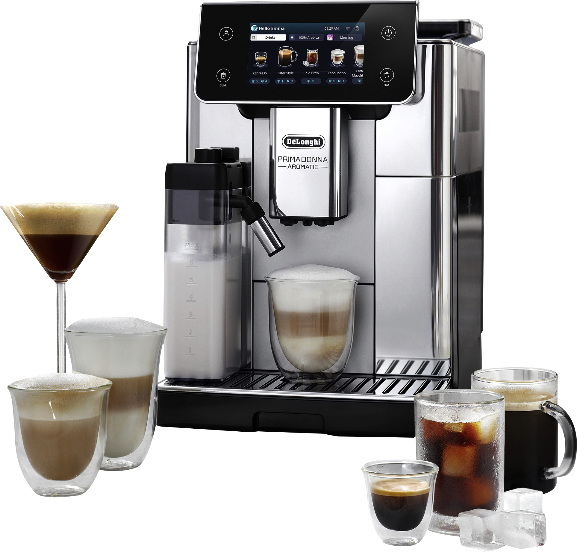 DELONGHI Primadonna Aromatic ECAM630.55.SSM - über 35 heiße und kalte Rezepte, Cold Brew, 4 Profile, Kaffeevollautomat Edelstahl gebürstet glänzend