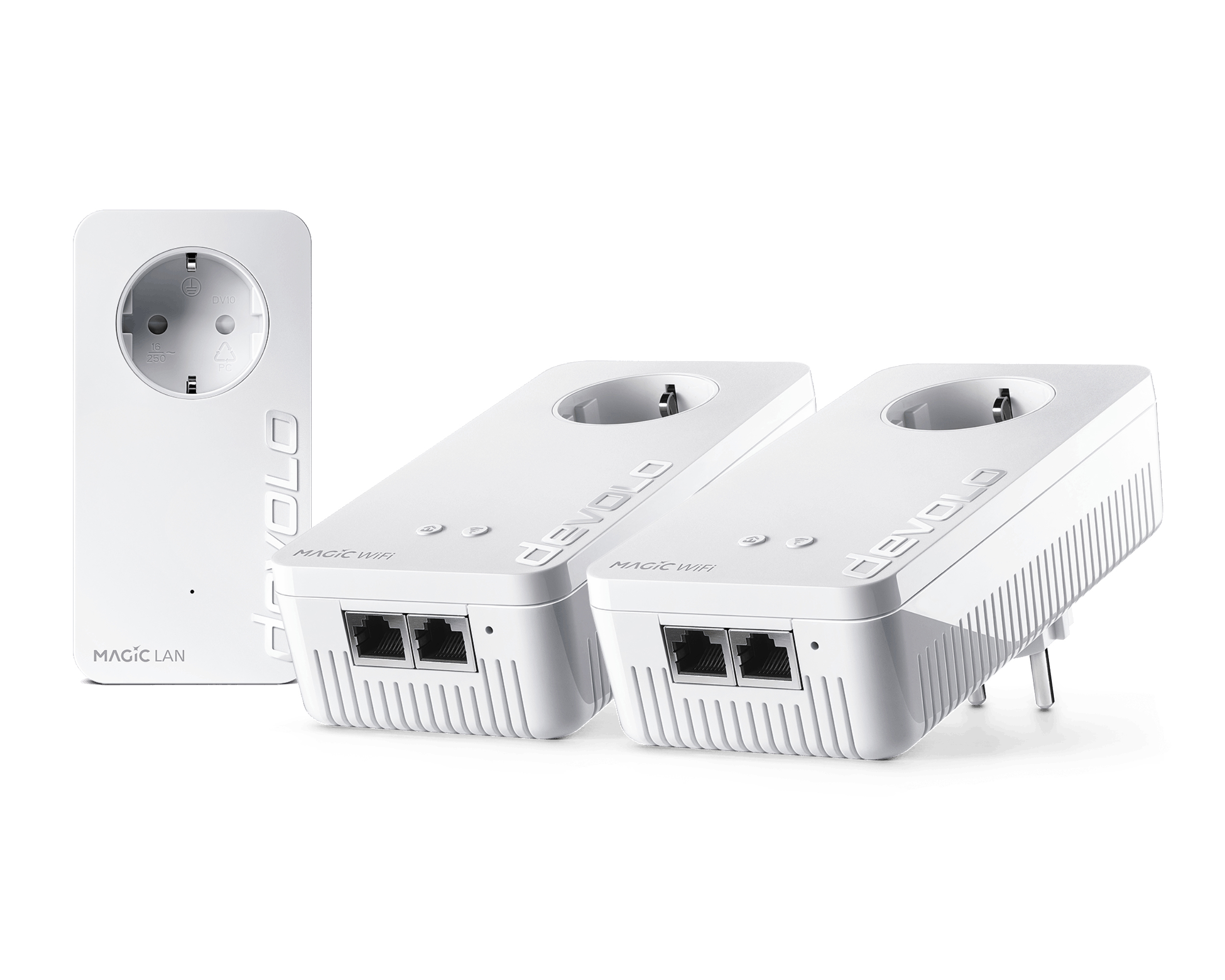 1x devolo Magic 2 WiFi next Adapter, 1x devolo Magic 2 LAN Adapter, 1x Installationsanleitung, 1x Ethernet-Kabel (2 m)