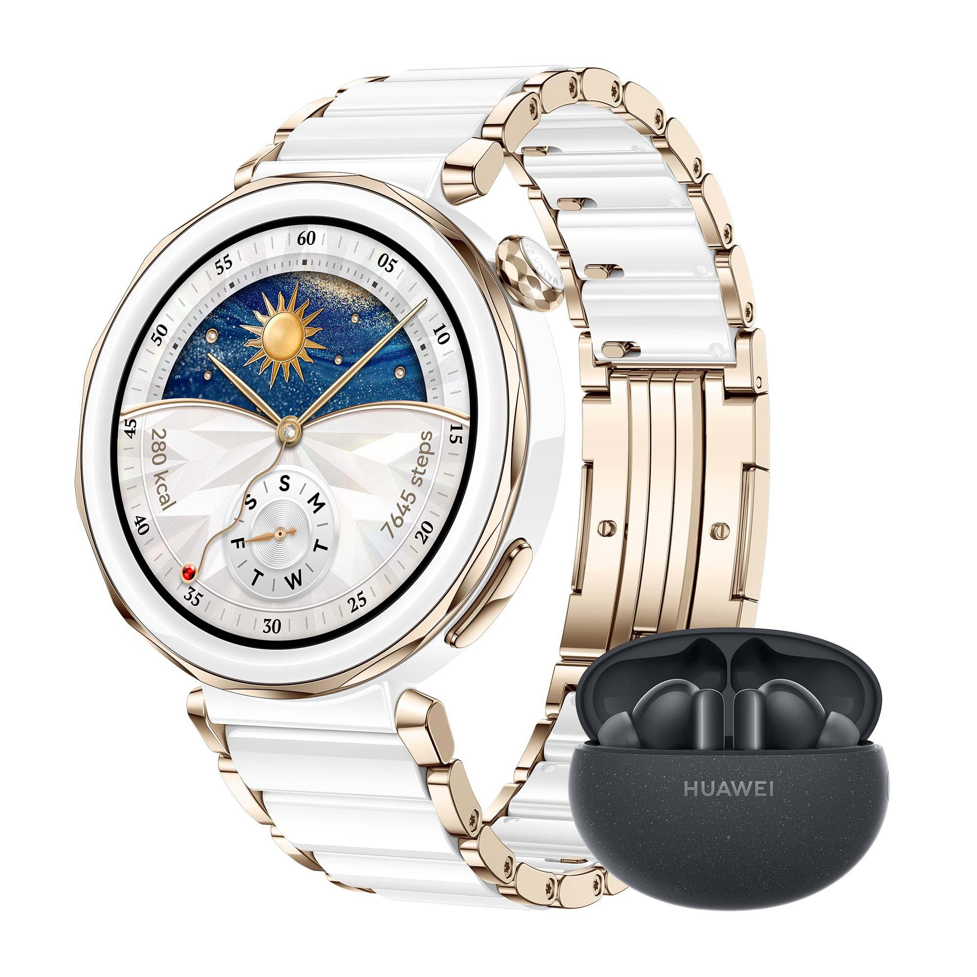 HUAWEI Watch GT5 Pro 42 MM + FreeBuds 5i Smartwatch Keramik Titanium Armband, 130 mm - 190 mm, Keramik Weiß