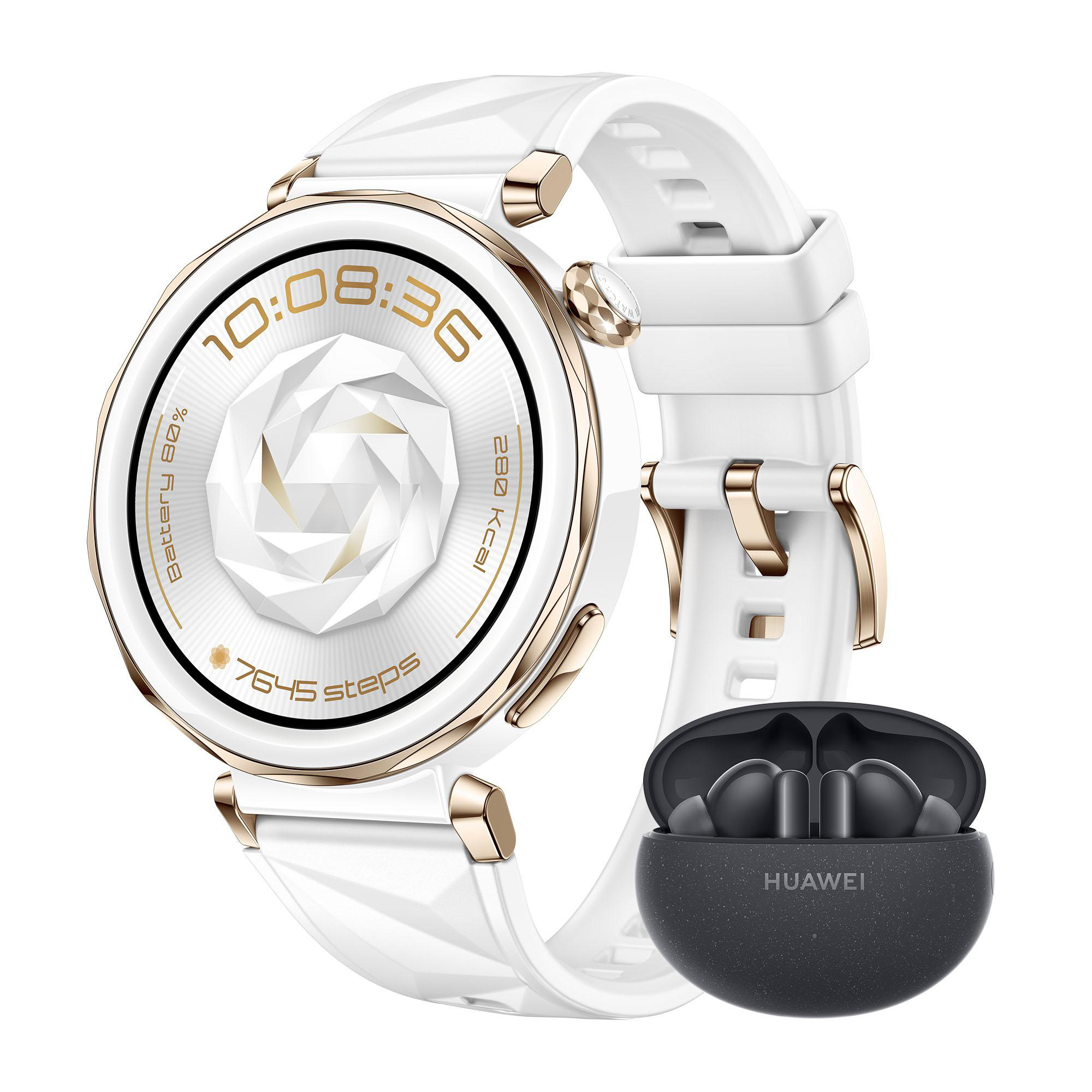 HUAWEI Watch GT5 Pro 42 MM + FreeBuds 5i Smartwatch Fluorelastomer, 120 mm- 190 mm , Weiß