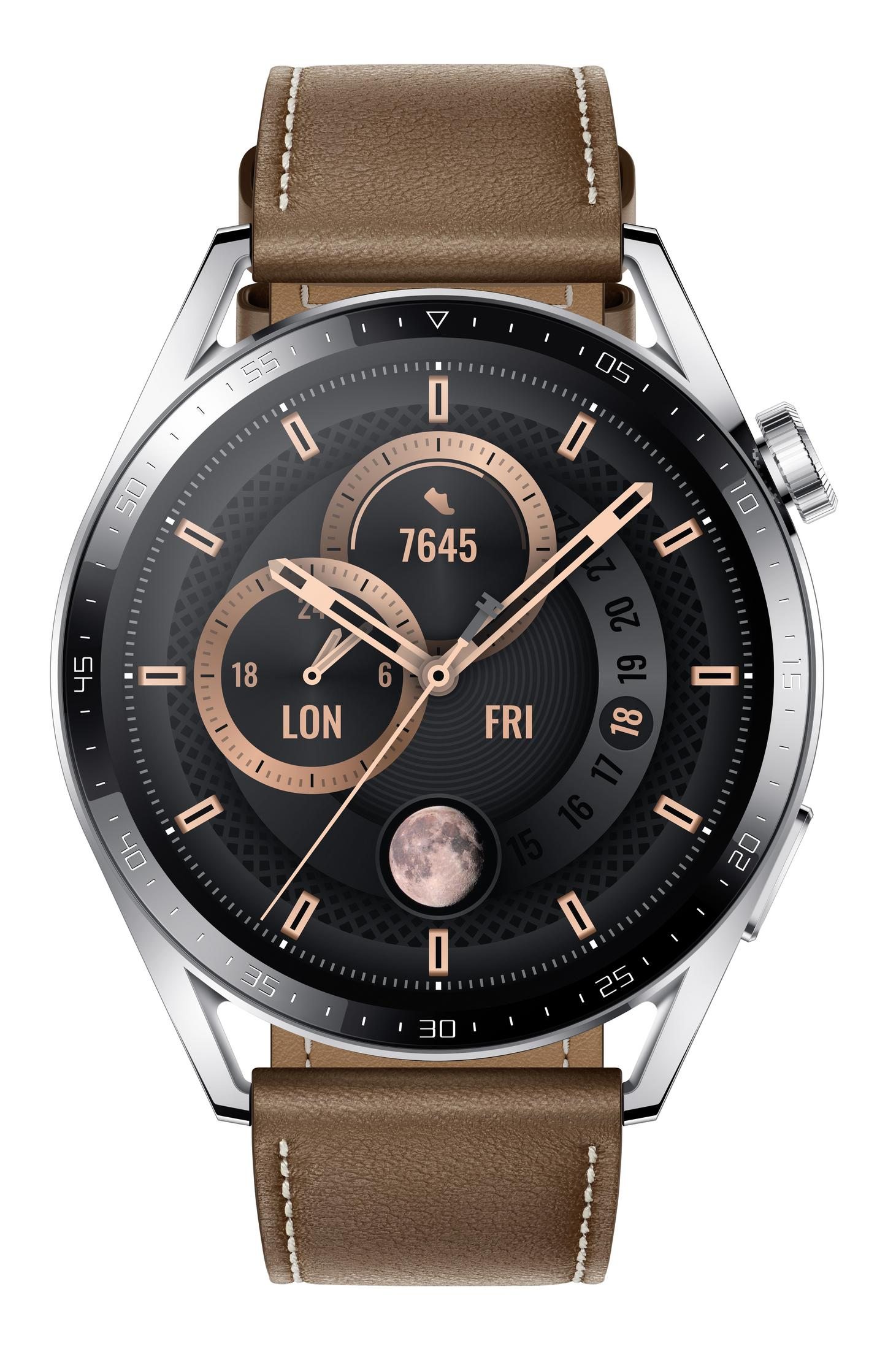 HUAWEI WATCH GT3 46MM JUPITER B19V STAINLESS STEEL LEATH. Smartwatch Edelstahl Echtleder, 140 - 210 mm, Stainless Steel/Brown Leather
