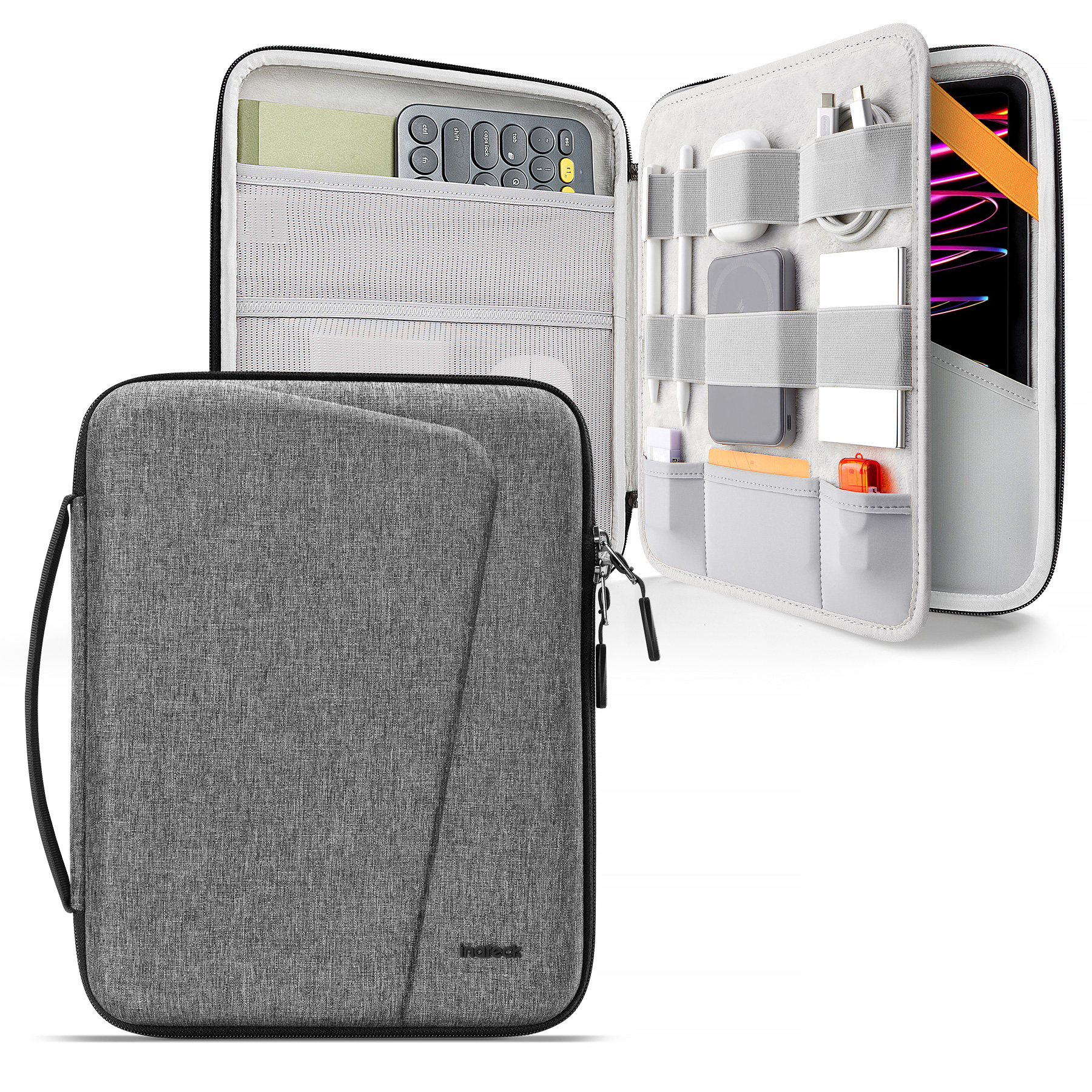 INATECK 12,9 Tablet-Hülle für 12,9 Zoll iPad Pro M2 2022, M1 2021, 2018-2020, Stoßabsorbierende Tragetasche Tablet-Hülle Sleeves für Universal Polyester,EVA, grau