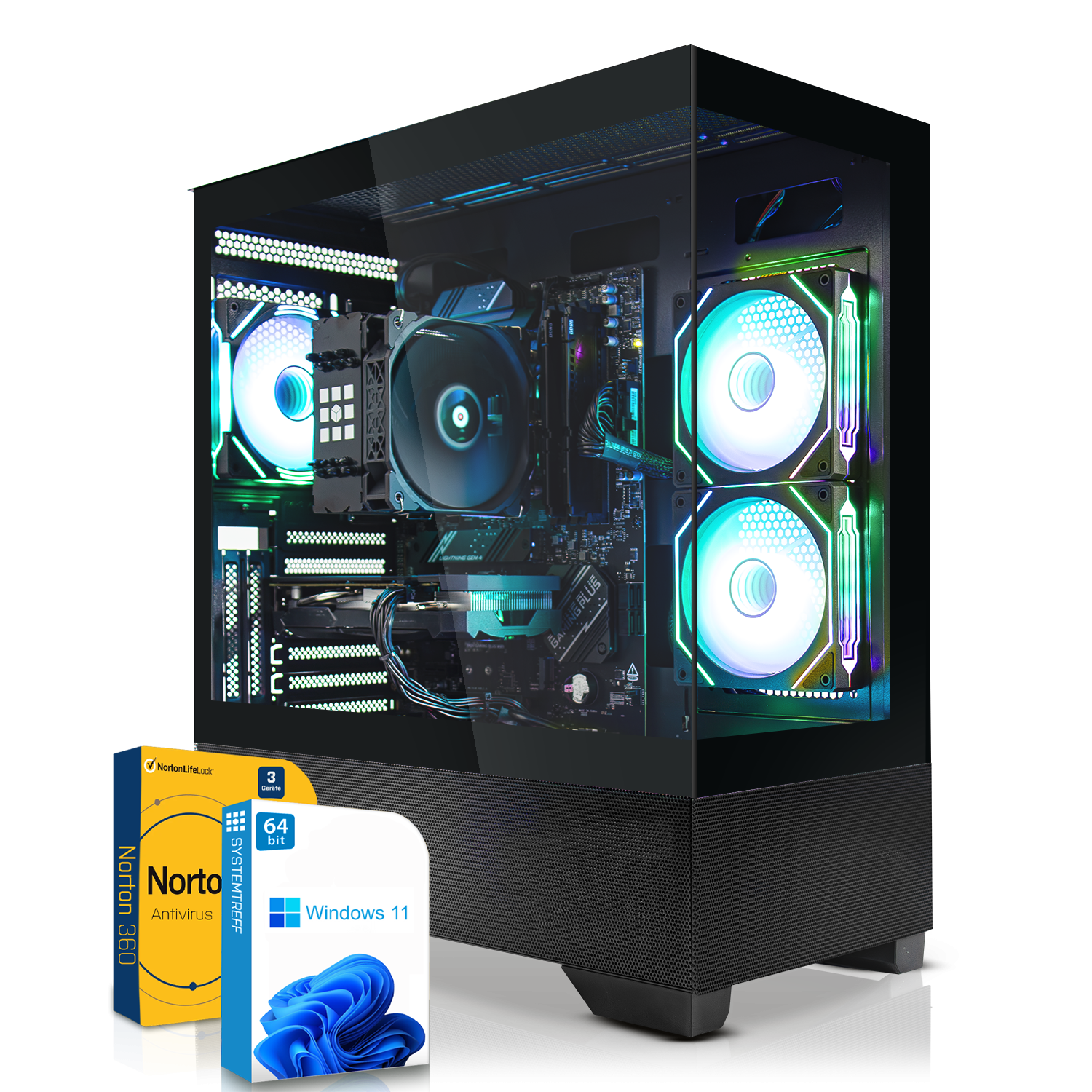 INTEL VENOM Wasserkühlung, ARGB, WLAN + Bluetooth, Gaming PC mit Intel® Xeon® E, 64 GB RAM, 500 GB SSD, NVIDIA GeForce RTX™ 3050, Windows 11 Pro