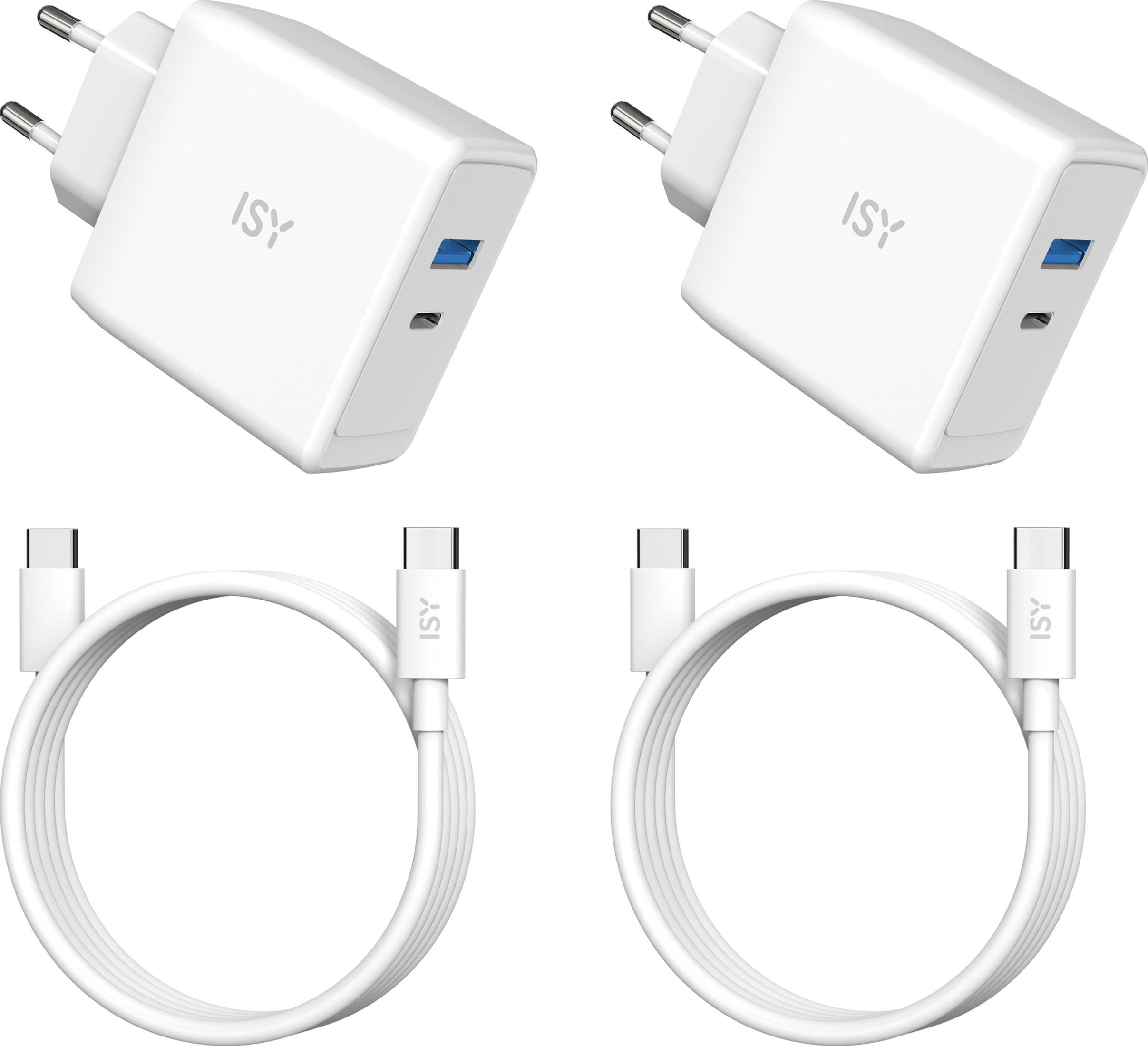 ISY IAC 5265 DOUBLE PACK 65W GANCHARG + CABLE Ladegerät universal, Weiß