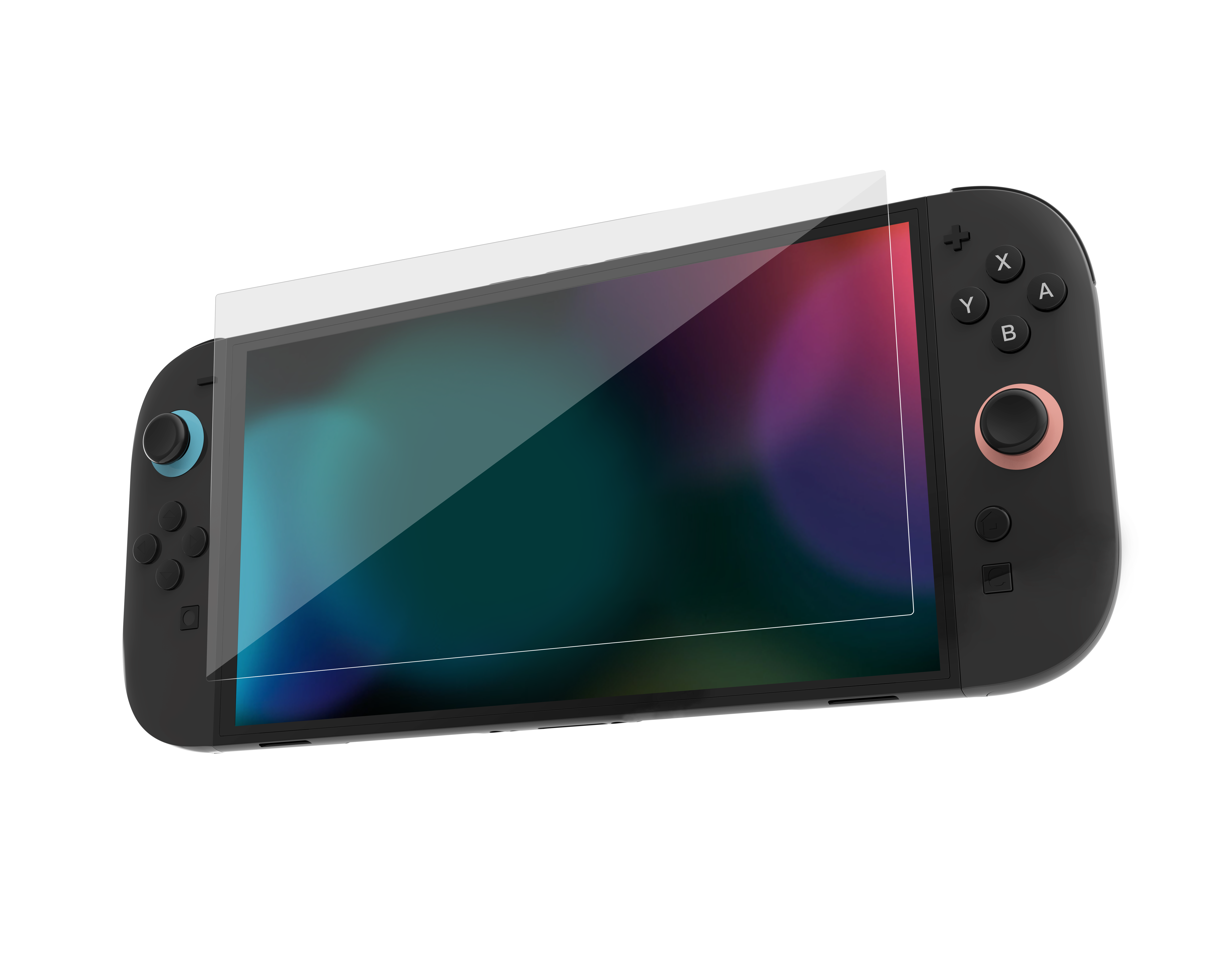 1x Hartglas Bildschirmschutzfolie, 1x biologisch abbaubarer Montagerahmen, 1x Reinigungszubehör, 1x Installationsanleitung (Konsole nicht enthalten)