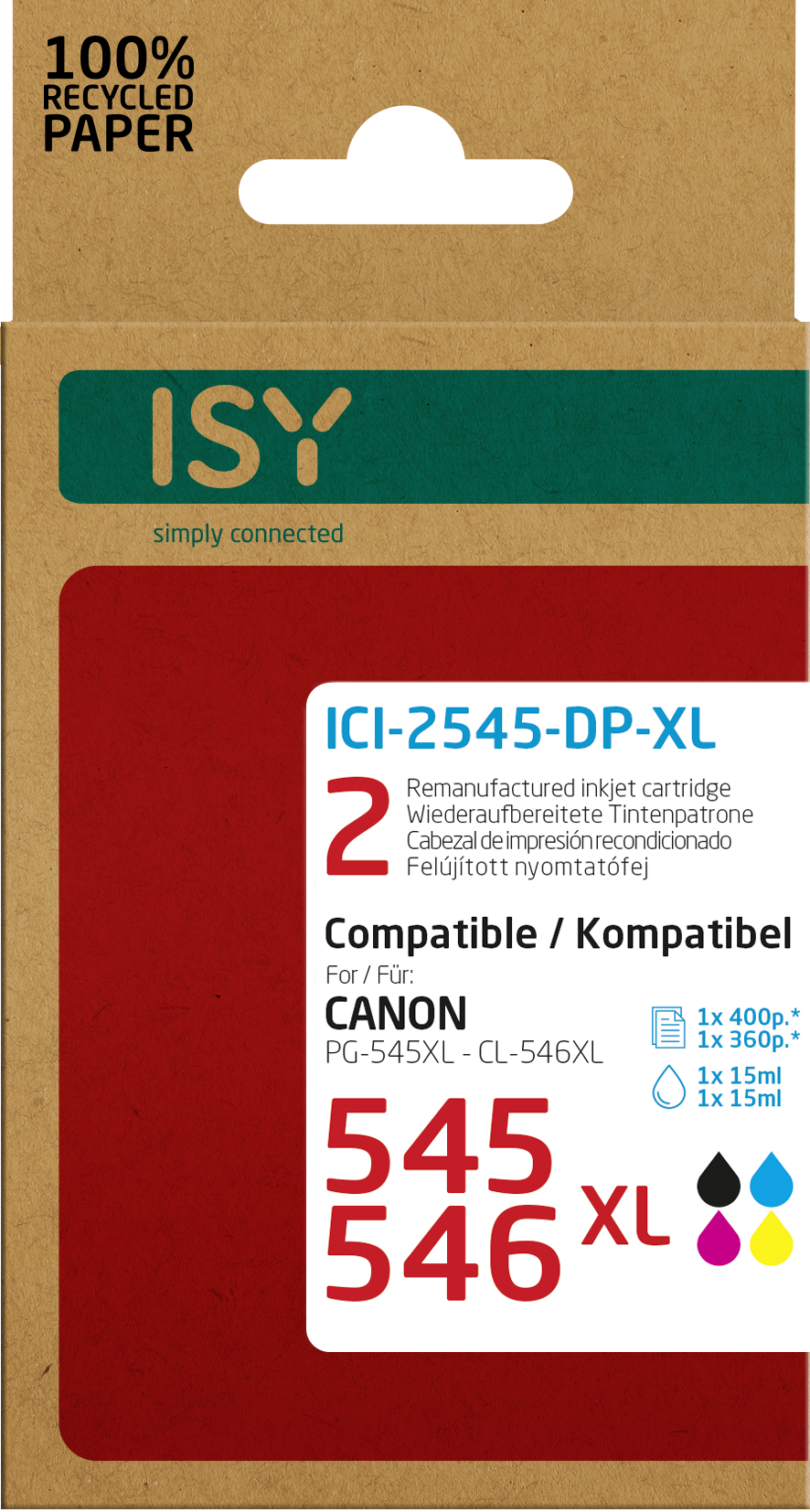 ISY ICI-2545-DP-XL Tintenpatrone Mehrfarbig (Doppelpack 2 Canon PG-545XL bk + CL-546XL cl)