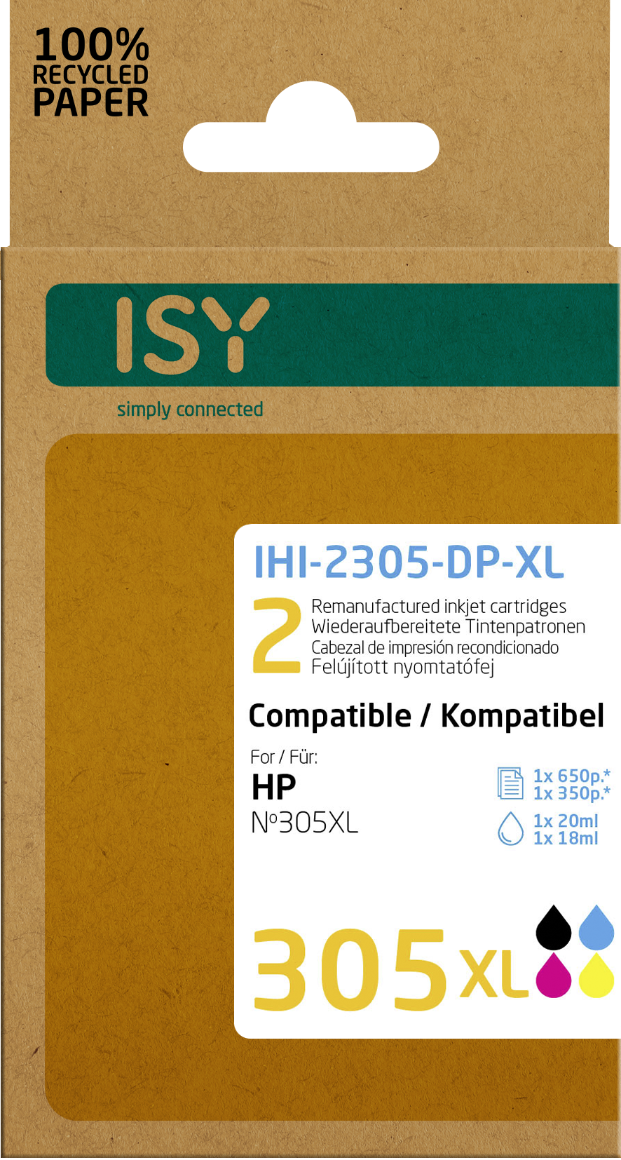 ISY IHI-2305-DP-XL Ink cartridge Mehrfarbig (Doppelpack 2 HP Nr. 305XL black + Nr. 305XL colour)