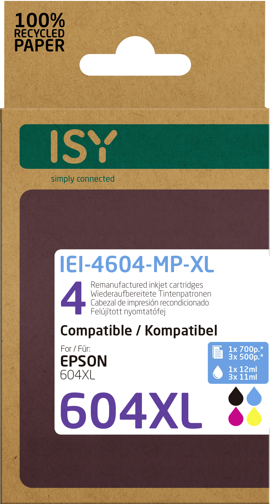 ISY IEI-4604-MP-XL Tintenpatrone 1x Tintenpatrone (Schwarz), 3x Tintenpatronen (Farbig) (C13T10H64010)