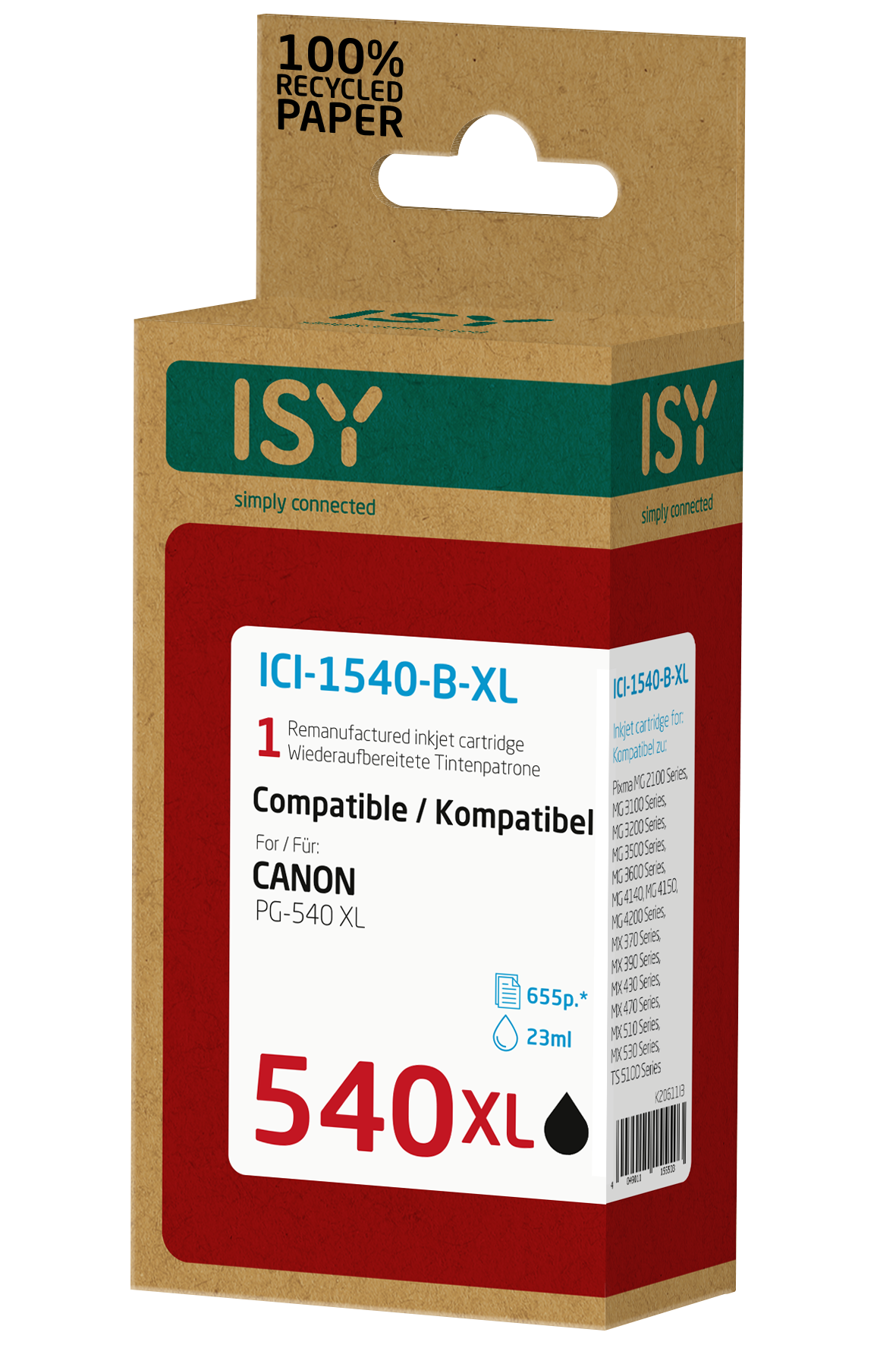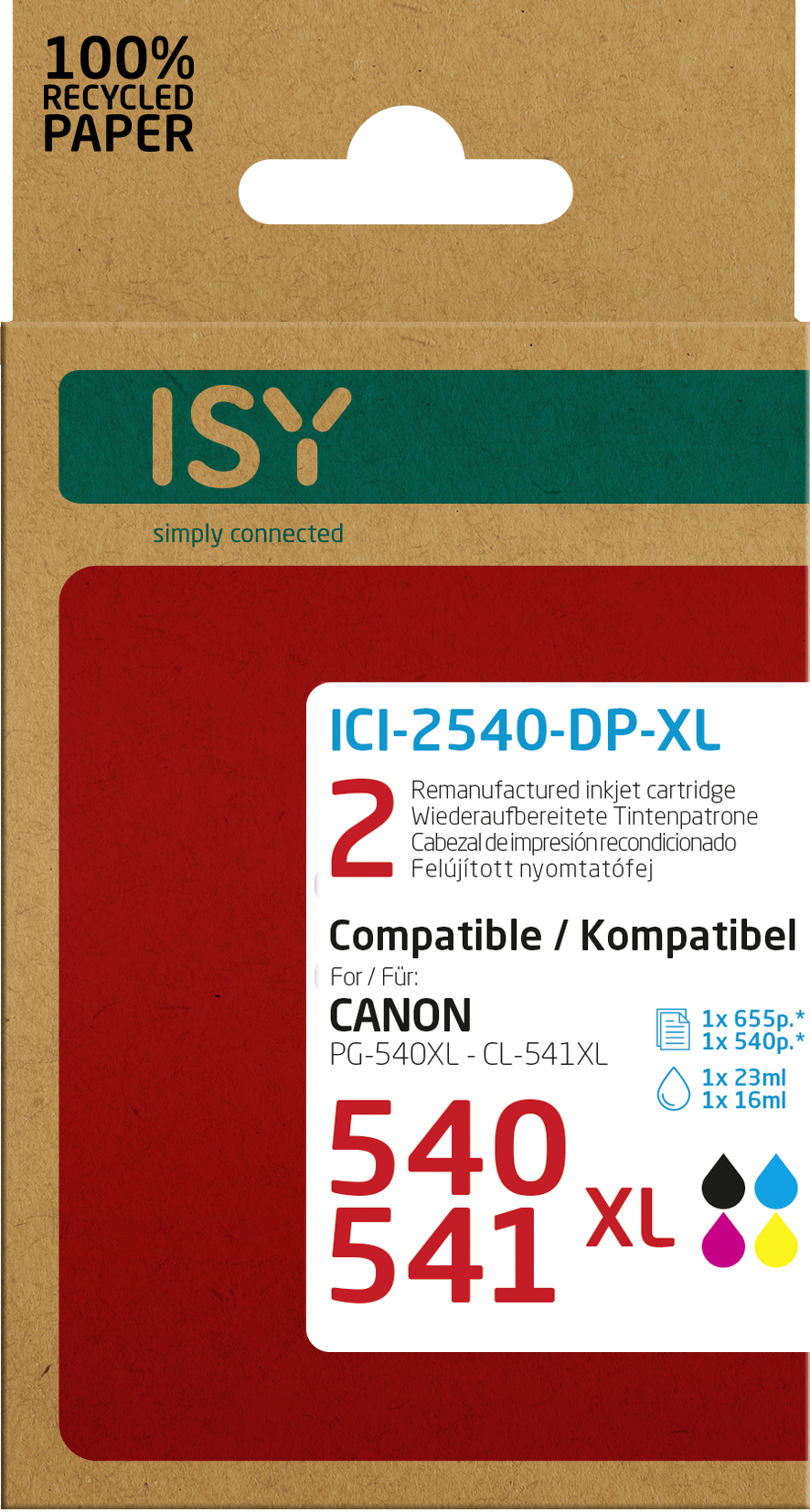 ISY ICI-2540-DP-XL Tintenpatrone Mehrfarbig (Doppelpack 2 Canon PG-540XL bk + CL-541XL cl)