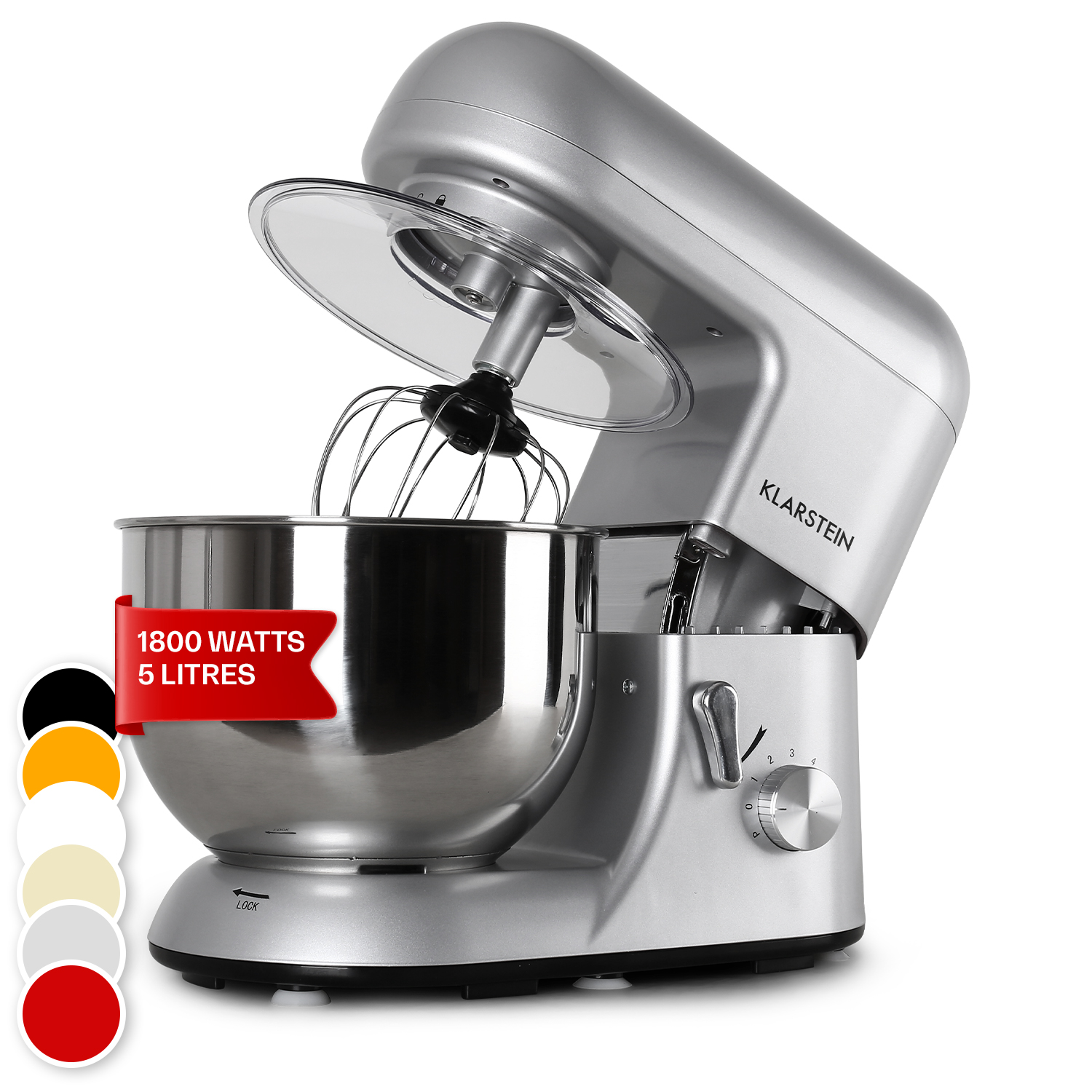 KLARSTEIN Bella Rührmaschine Silber-Metallic (Rührschüsselkapazität: 5,2 l, 1800 Watt)