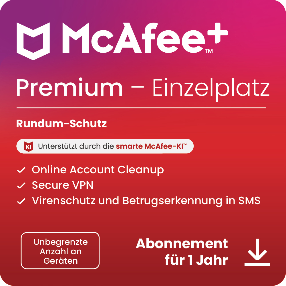 McAfee+ Premium Einzelperson, Antivirus und Internet-Sicherheitssoftware für unbegrenzte Anzahl an Geräten, 1-Jahres-Abo - [Multiplattform]