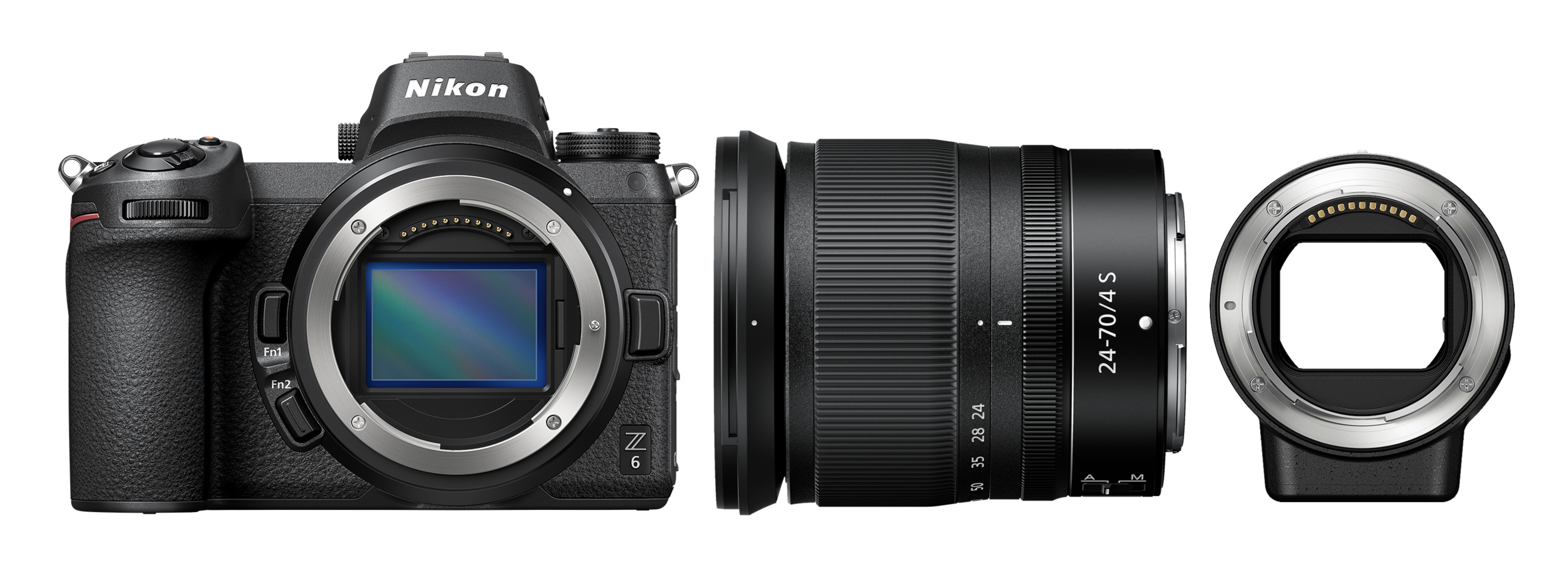 Z 6, FTZ Objektivadapter, Nikkor Z 24-70 mm, Akku, Ladegerät, XQD Speicherkarte (64 GB), Augenmuschel, Tragegurt, Gehäusedeckel, USB-Kabel, Blitzschuhabdeckung