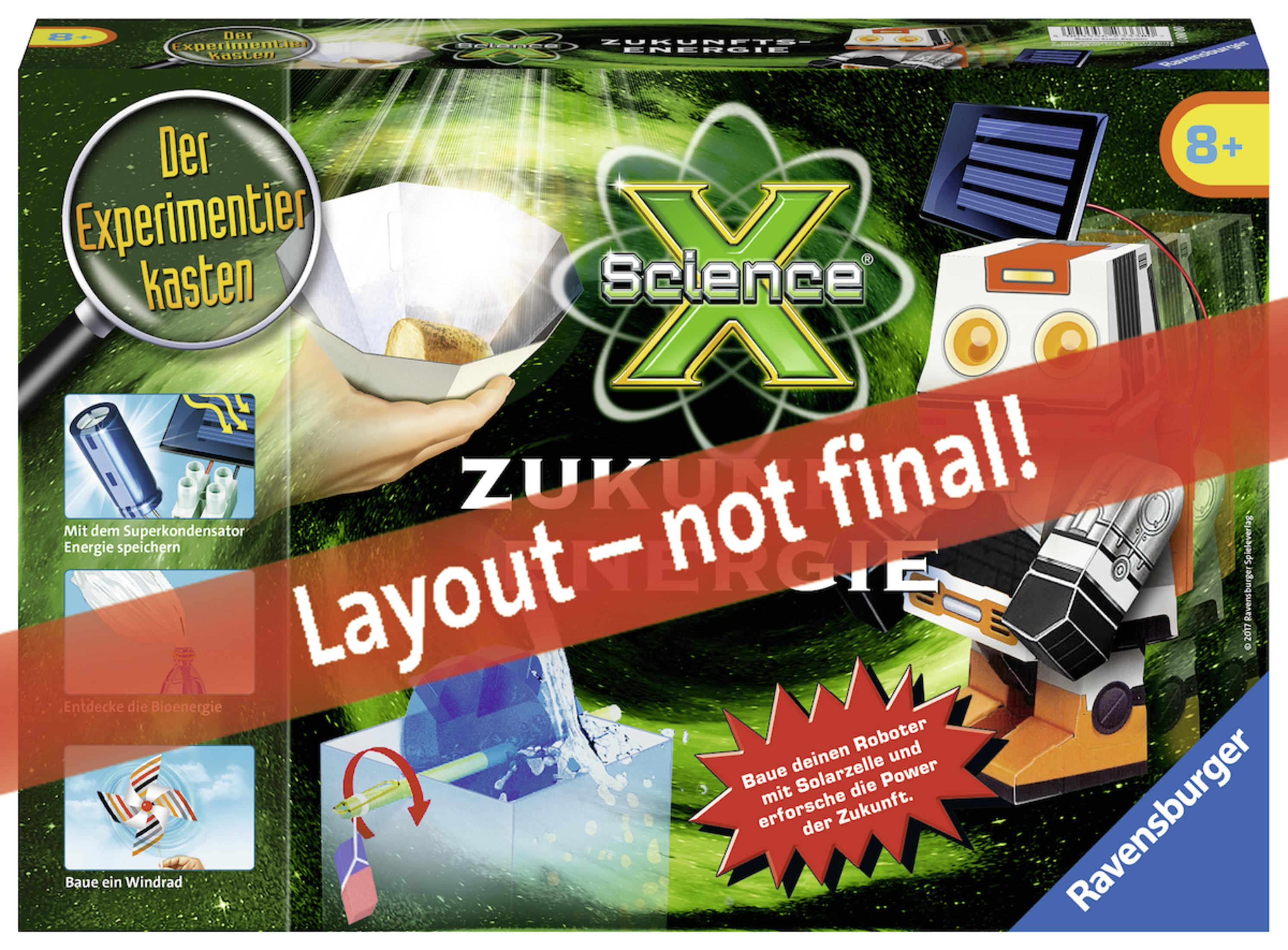 Solarzelle, Motor, Schalter, Kondensator, Platine, Roboter aus Karton, Röhrchen, Wasserrad-Bauteile, weißer Faden, Gummiring, Kunststoffbeutel, Solar Bratpfanne, Anleitungsheft