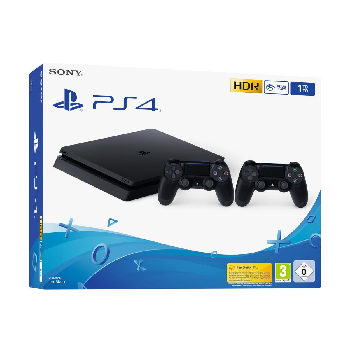 PlayStation®4 Konsole, DUALSHOCK®4 Wireless-Controller, Mono-Headset, HDMI™-Kabel, Bedienungsanleitung, USB-Kabel, Netzkabel
