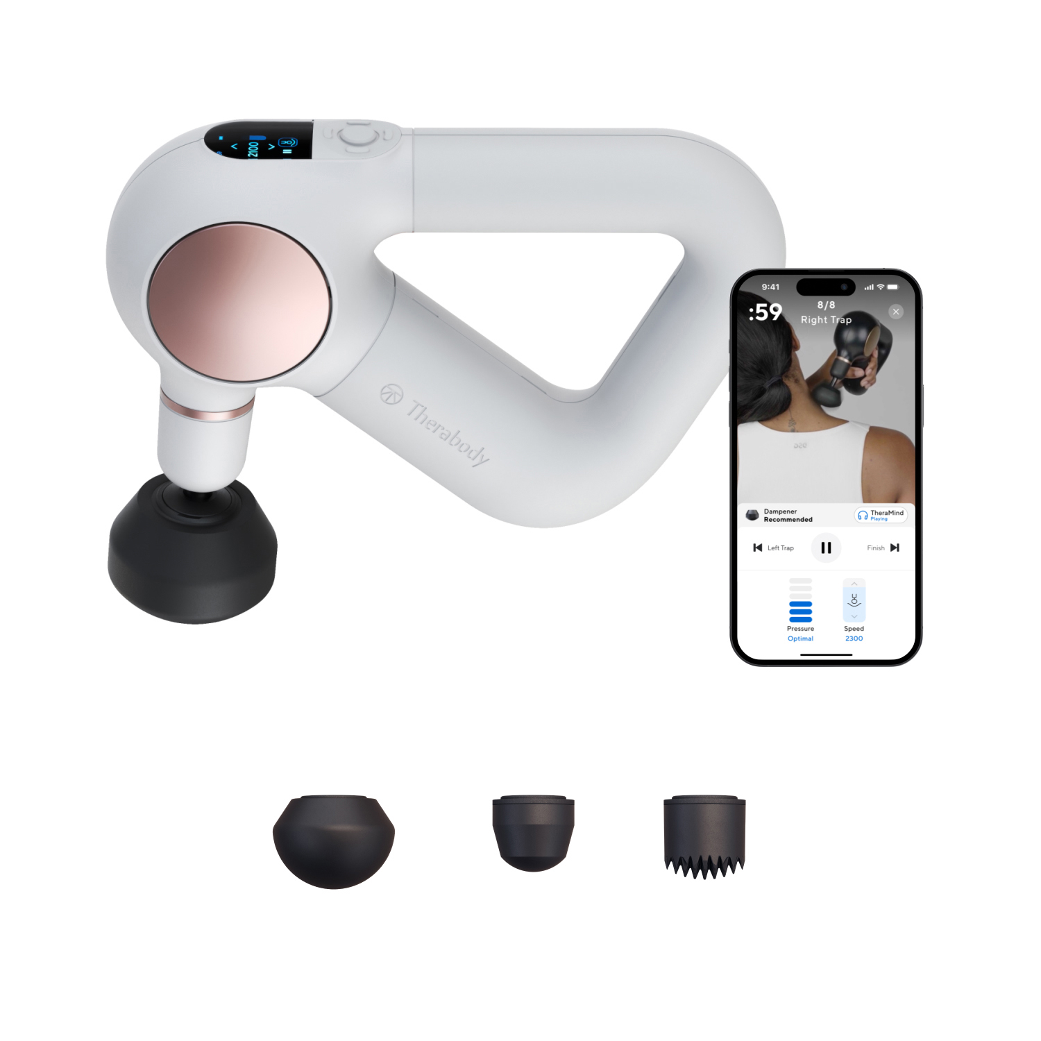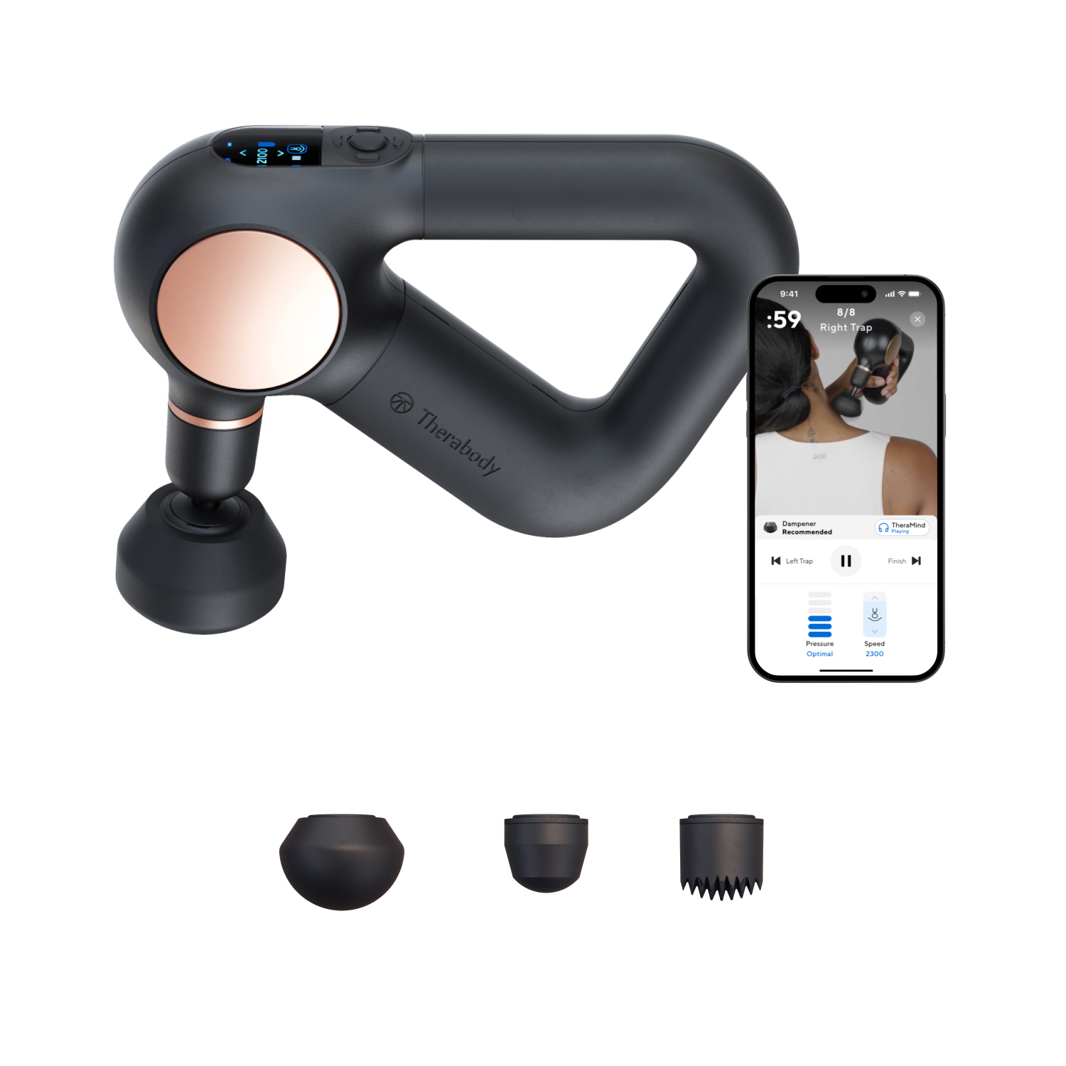 Theragun Prime Plus-Gerät,4 Massageaufsätze, USB-C-Ladekabel, QuietForce Technology-Öl, Reiseetui, Bedienungsanleitung