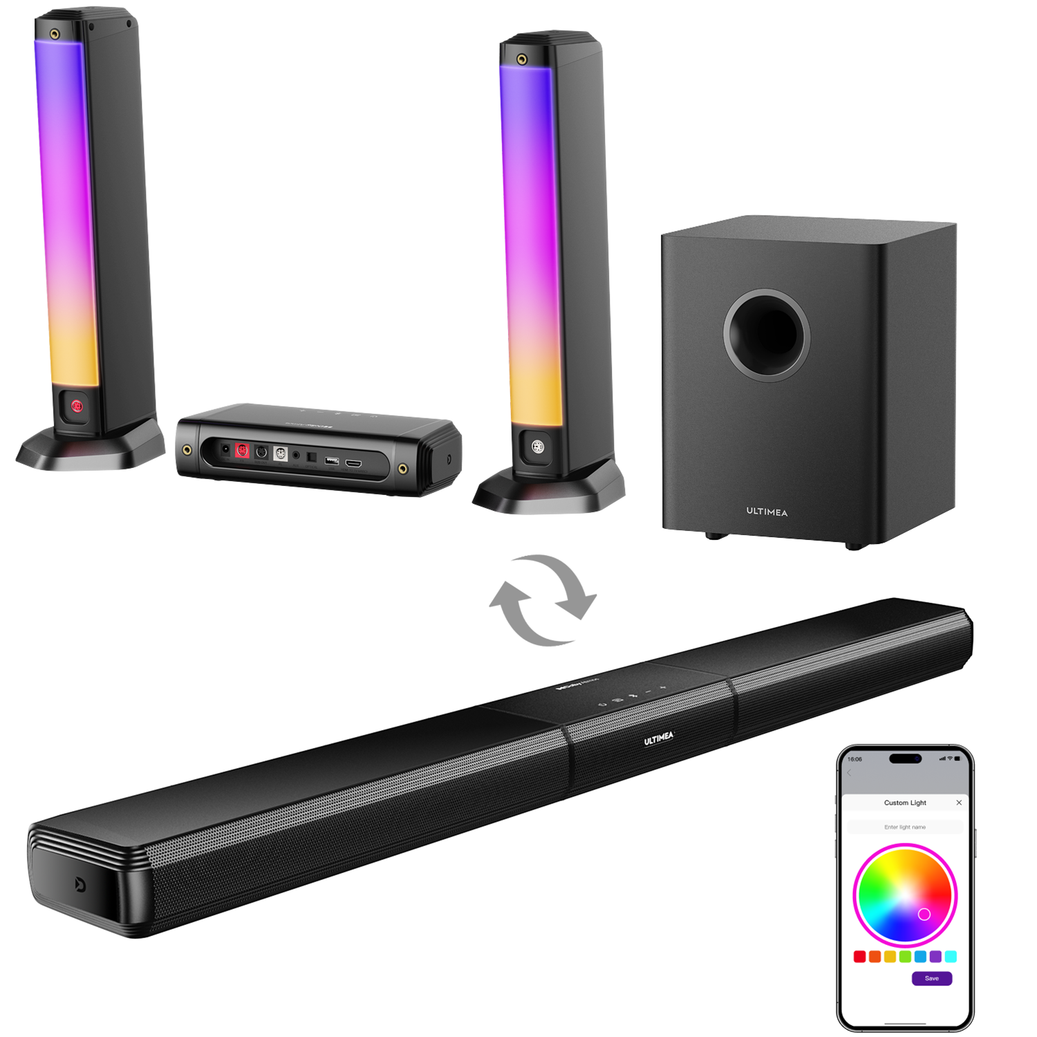 Soundbar, 4x Surround-Lautsprechern, Kabelloser Subwoofer