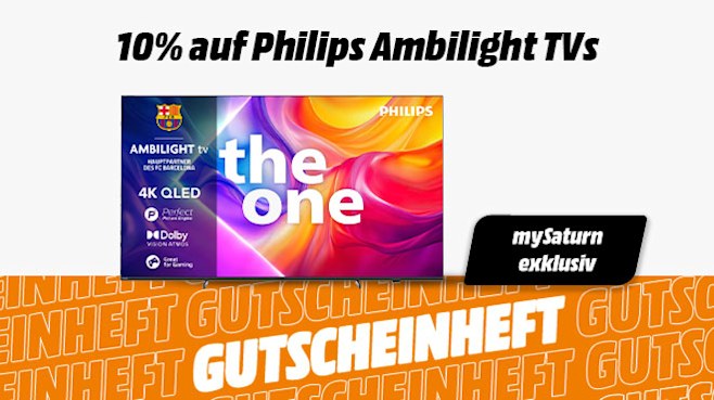 Hol dir als mySaturn-Kunde 10% auf teilnehmende Philips Ambilight TVs – jetzt in unserem Gutscheinheft