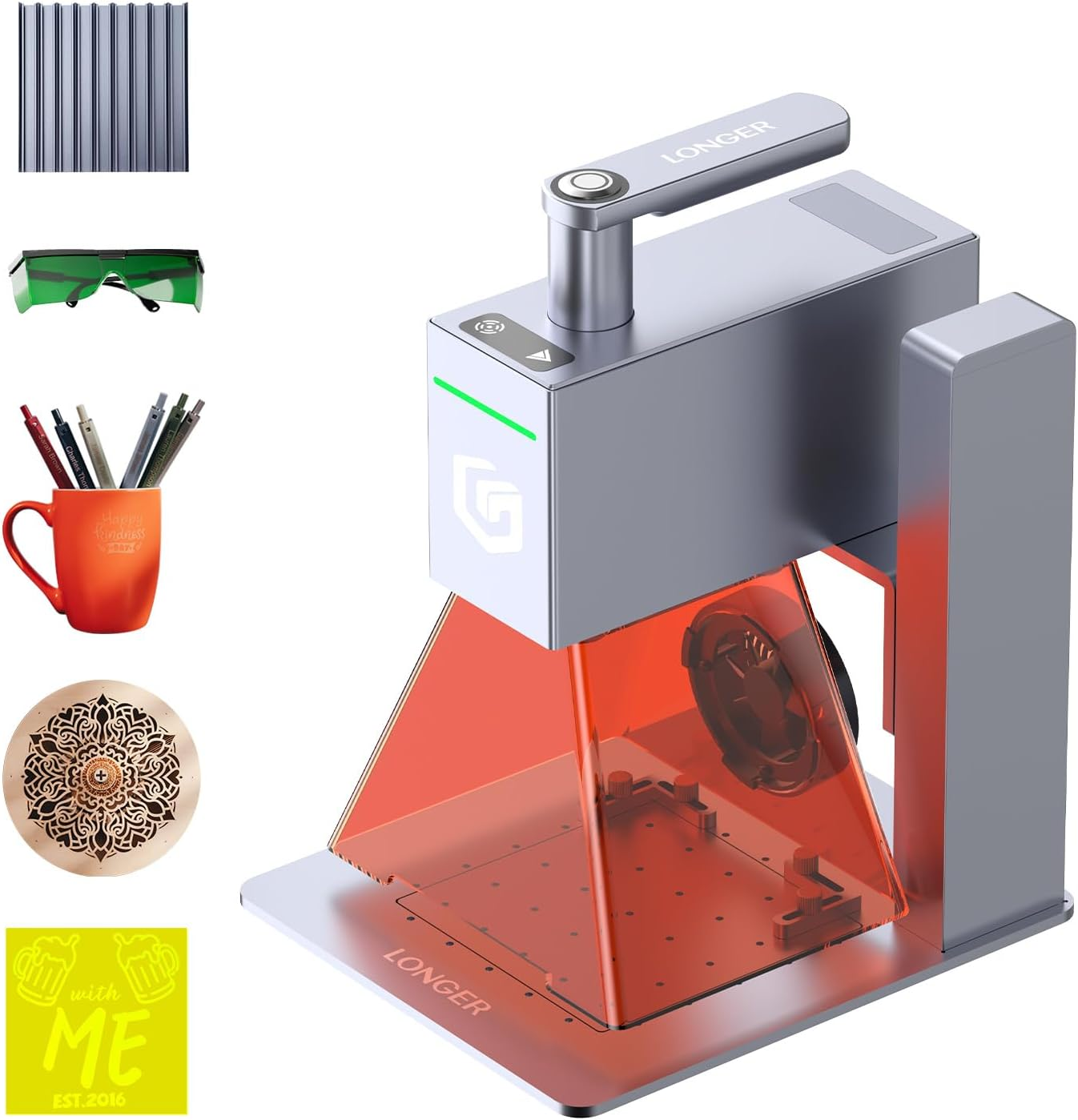 1x Lasergraviermaschine 1x Schutzabdeckung 1x Schutzbrille 1x Werkzeugset 1x Bedienungsanleitung