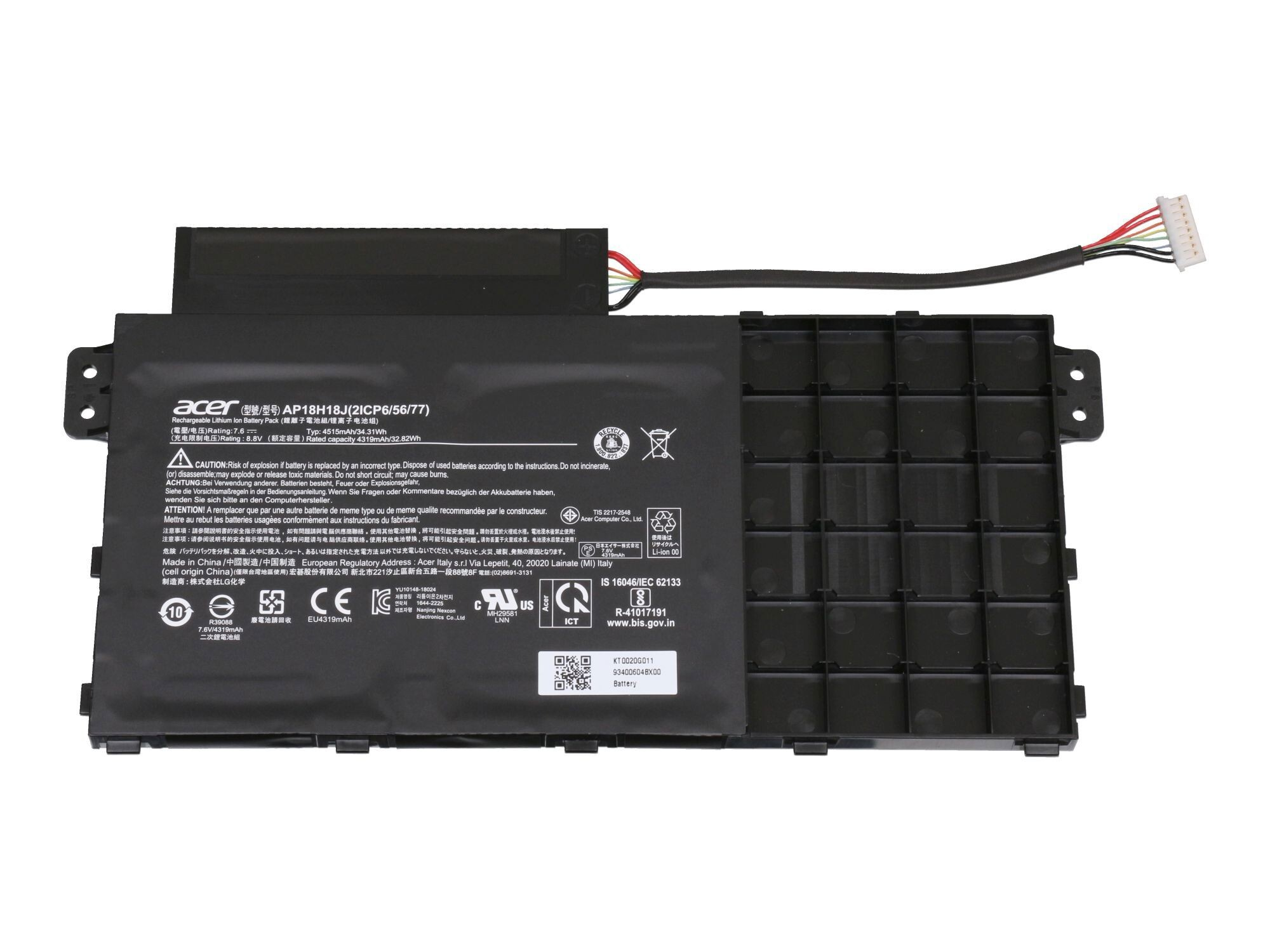 ACER KT0030G024 Original 11,61V (Typ AP19B8M) Li-Polymer Akku, 11.61 Volt, 4821 mAh
