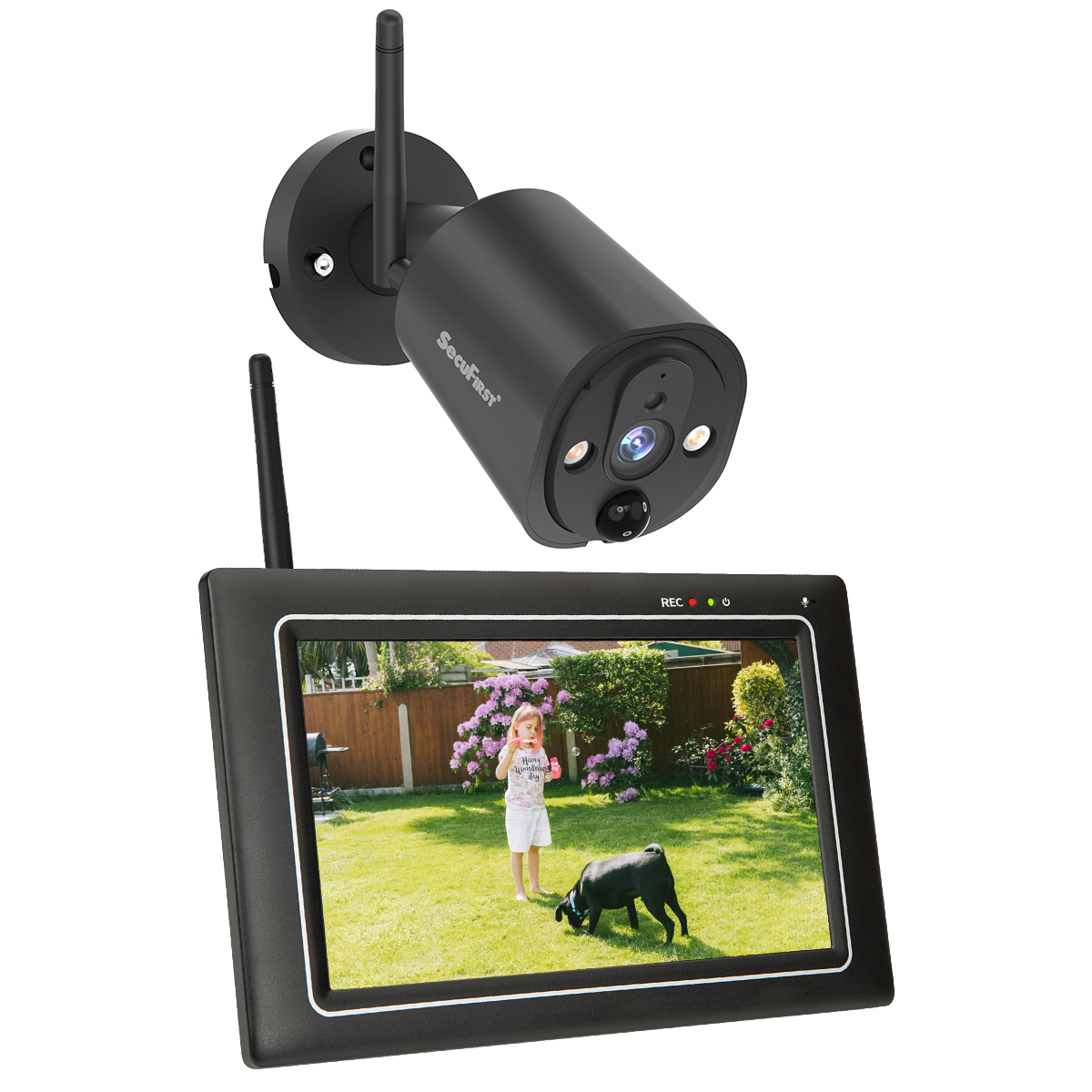 (1x) 7-Zoll-Touchscreen Monitor, (1x) Außenkameras mit Multipositionsständern, (3x) 1.8M AC-Netzadapter, (2x) 1.8 M Verlängerungskabel für die Stromversorgung,32 GB MicroSD-Karte