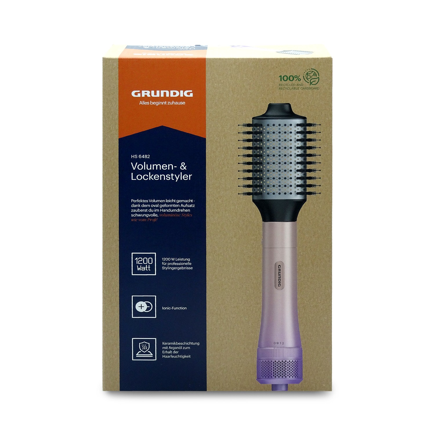 Warmluftbürste, 1x Rundbürste, 1x Bürstenaufsatz, Bedienungsanleitung.