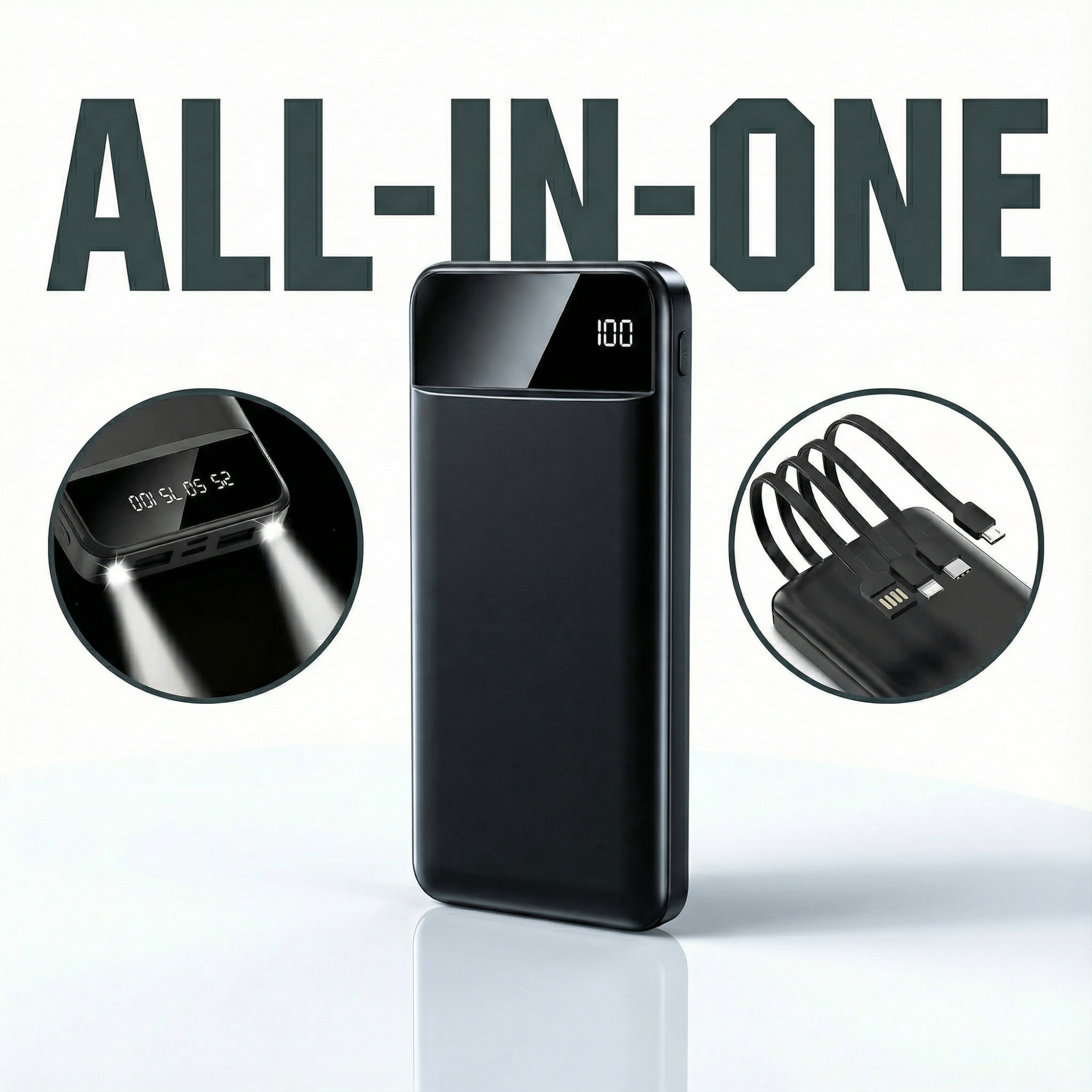 1x USB-A (integriert, Input), 1x Lightning (integriert, Output), 1x USB-C (integriert, Output), 1x Micro-USB (integriert, Output), 2x USB-A (Output)
