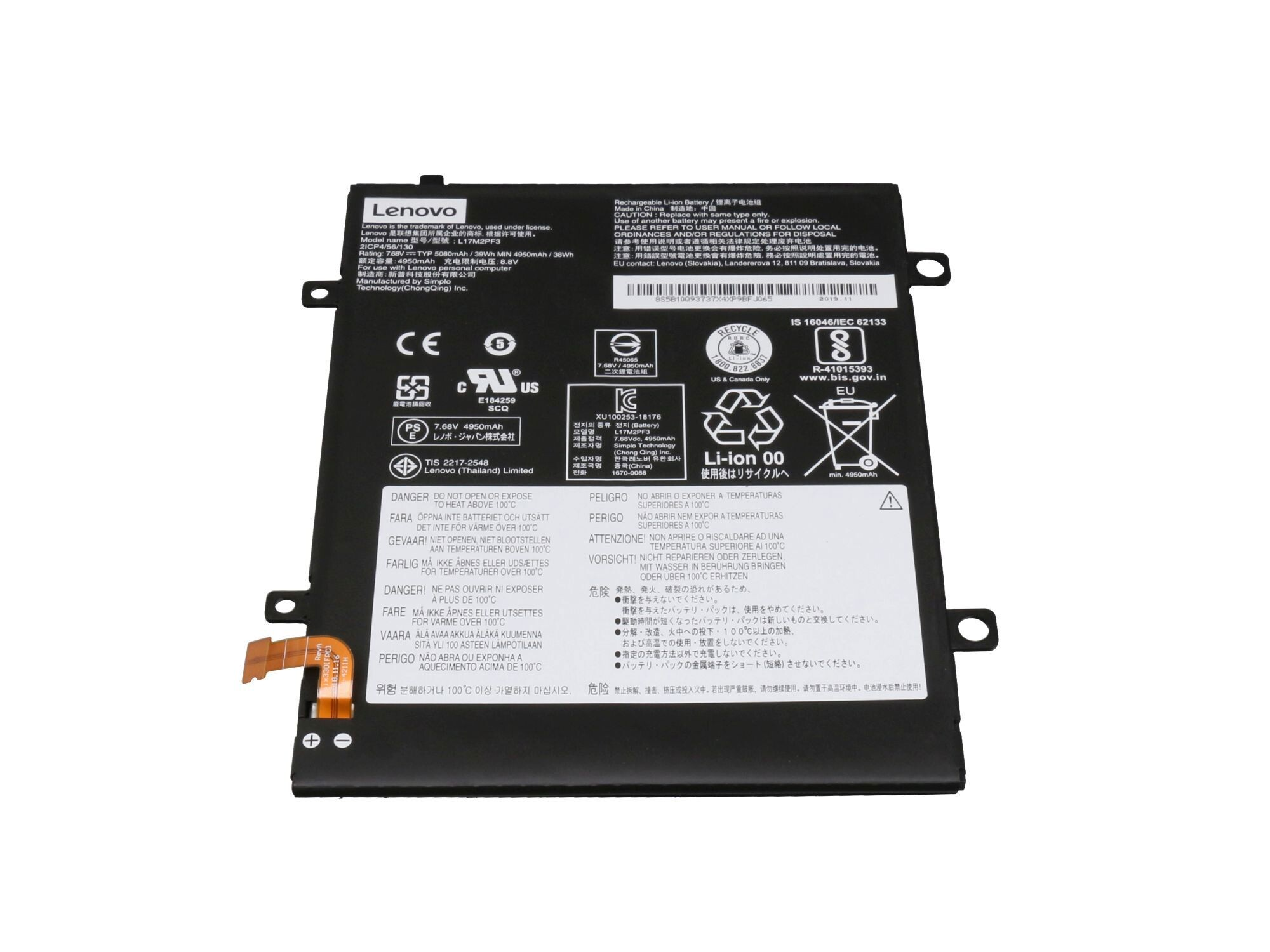 LENOVO L16L2PB3 Original Li-Polymer Akku, 7.6 Volt, 4610 mAh