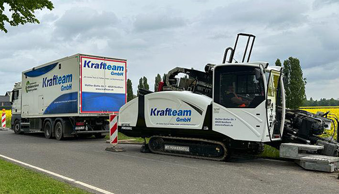 Wenn es um die Digitalisierung in Deutschland geht, führt kein Weg an Krafteam vorbei. Das junge und 200 Mitarbeiter starke Team arbeitet stetig daran, die digitale Infrastruktur in Deutschland zu verbessern. Das Unternehmen kümmert sich nämlich darum, dass die benötigten Kabel in den Boden kommen. Zu den Spezialgebieten von Kraftteam gehören der Tiefbau und Glasfaserausbau. Was sie allerdings von der Konkurrenz abhebt und besonders auszeichnet, ist die innovative Methode: das HDD-Horizontalspülbohrverfahren. Dank Wasserunterstützung kann das Team mit dem besonderen Bohrgerät unter Bahnschienen, Straßen und anderen Hindernissen bohren, ohne die Grasnarbe zu beschädigen oder die Straße aufzureißen. Dadurch wird der Straßenverkehr nicht eingeschränkt und das Gefahrenpotenzial für Fußgänger minimiert. Auch Kosten werden dadurch gespart, da keine große Betonschicht geöffnet und wiederhergestellt werden muss. So kann das Internet zu fast jedem in Deutschland gebracht werden.