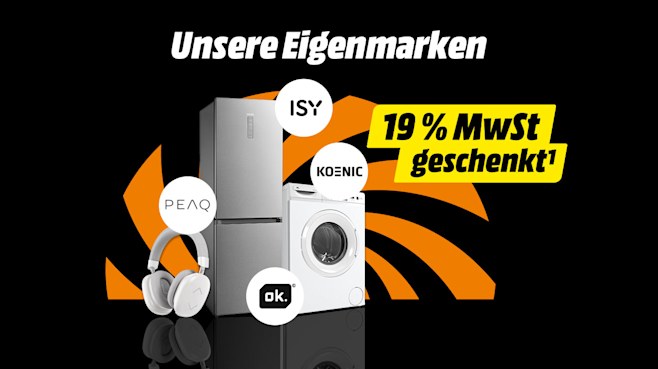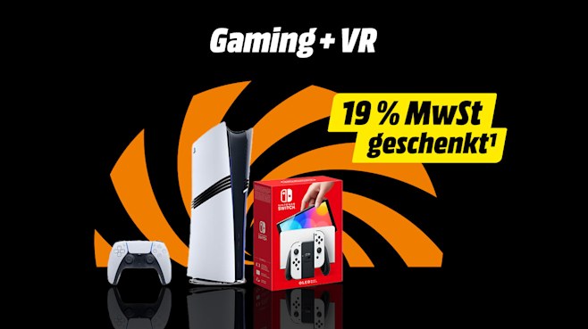 ¹ Aktion gültig für registrierte myMediaMarkt- bzw. mySaturn-Kunden für ausgewählte und gekennzeichnete Artikel in MediaMärkten und SATURN-Märkten in Deutschland vom 24.10. bis 27.10.2025 (auch am verkaufsoffenen Sonntag, den 26.10., bitte beachten Sie dazu die lokalen Öffnungszeiten Ihres Marktes) und im MediaMarkt- und SATURN-Onlineshop unter mediamarkt.de bzw. saturn.de vom 23.10., 20 Uhr bis 27.10.2025, 23:59 Uhr. Volljährige private Endkunden, die registrierte myMediaMarkt- bzw. mySaturn-Kunden sind, erhalten auf vorrätige bzw. online sofort verfügbare Artikel einen Nachlass in Höhe des inkludierten Mehrwertsteueranteils, der auf den ausgezeichneten Preis anfallen würde. Der Mehrwertsteueranteil entspricht einem Nachlass von 15,966 % des jeweiligen Kaufpreises und wird auch auf mit 7 % MwSt. ausgezeichneten Artikeln gewährt. Bei Kauf im Markt erfolgt der Abzug an der Kasse, nach Vorzeigen der myMediaMarkt- bzw. mySaturn-Mitgliedskarte, online erfolgt der Abzug bei Kauf als eingeloggter myMediaMarkt- bzw. mySaturn-Kunde im Warenkorb. Keine Barauszahlung. Nicht kombinierbar mit anderen (Coupon-) Aktionen. Abgabe nur in haushaltsüblichen Mengen. Preishelden-Artikel sind von der Aktion ausgeschlossen. Weitere Ausschlüsse (Hersteller/Artikel/Abteilungen): ABSAAR; Amazon; Amiibo; AOC; Apple; AR GLASSES & AR ACCESSORIES (alle RAY-BAN Meta Brillen); AVM; Blink; Captiva bei Gaming Desktop; Kindle; Joule Performance bei Gaming Desktop; Microsoft Xbox (ausgeschlossen alle Konsolen); Osnatech; Ring; Samsung ausgeschlossen in dem Warenbereichen GSM (Smartphone, Smartwatch, AI Device,) und IT (Tablets, Convertibles, Notebook, Monitor); Sonos; Sunset; TCHIBO CAFISSIMO; TCHIBO; TECHNAXX (ausgeschlossen bei Solar und Balkonkraftwerk); Thrustmaster bei Joystick; Tolino; Xiaomi ausgeschlossen bei Tablets. Ausgeschlossene Artikel: Asus RC73YA-NH002W ROG XBOX ALLY (Art. Nr. 2998267) & RC73XA-NH011W ROG XBOX ALLY X (Art. Nr. 2998269); Bosch MCC9555DWC Cookit (Art. Nr.: 2915924); DJI alle OSMO NANO, MIC 3, MINI 5 PRO & MAVIC 4 PRO Serien; Dyson V16 PISTON ANIMAL (Art. Nr. 3006965), V16 PISTON ANIMAL SUBMARINE (Art. Nr. 3006966) & 226587-01 V8 CYCLONE (Art. Nr. 3011257) & Dyson AIRSTRAIT GIFTING (Art. Nr. 3010741) & SUPERSONIC NURAL GIFTING (Art. Nr. 3010742) & AIRWRAP I.D.T GIFTING (Art. Nr. 3010748); Google Pixel Watch 4 Serie & Google Pixel 10, Pixel 10 Pro, Pixel 10 Pro Fold und Pixel 10 Pro XL Serien; Hisense 32 A 4 Q & 55 A 6 N; JBL TOUR ONE M3 Serie; LENOVO LEGION GO 8AHP2 R-Z2 32 (Art. Nr. 3015841) & LEGION GO 8ASP2 R-Z2 32 (Art. Nr. 3015842); LG QNED 70 A6 Serie & der 75 QNED 7EA6; META 899-00586-01 QUEST 3 512GB EMEA TYPE-C (Art. Nr. 2896393); MSI CLAW 8 AI+ A2VM-091 ULTRA7 (Art. Nr. 3013255); Nintendo alle Switch 2 & Switch 2 Zubehör; PlayStation alle PS5 Konsolen Bundles mit EA SPORTS FC 26 (Art. Nr. 3016155, Art. Nr. 3016156, Art. Nr. 3016157) & Refurbish Konsolen (Art. Nr. 2947628); Philips BRI 957/00 LUMEA SERIES 9000 INKL. 4 AUFSÄTZE (Art. Nr. 2716510), Sonicare Prestige HX 9992/11 (Art. Nr. 2728698) & HX 9992/12 (Art. Nr. 2728699) & Philips 65OLED760/12 & 55PUS8550/12; Samsung GQ 55 Q 7 F, Samsung GALAXY BUDS FE, BUDS 3 FE, BUDS 3 & BUDS 3 PRO Serien; Sony S35B TV Serie, Sony WH1000XM6 Serie; Sony DUALSENSE WRLS-CONTROLLER von THE LAST OF U, GHOST OF YOTEI, ASTRO BOT JOYFUL & GOD OF WAR 20TH ANNIV; Tonies TONIEBOX-STARTERSET-TB2 CLASSIC & TONIEBOX-STARTERSET-TB2 FULL und ausgewählte Weihnachtsfiguren sowie Solaranlagen & deren Komponenten (Balkonkraftanlagen); Fitnessgeräte & Sportzubehör; Gartenwerkzeug; Haushaltswaren; Tinte; Toner; Papier; Software & Games; Vorbesteller Artikel; jede Art von Download --/Content --/Gaming Cards und Codes; Guthabenkarten; Gutscheinkarten/ -boxen; Prepaidkarten; Film & Musik; E-Book Reader; E-Books/Bücher; Zusatzgarantien; von MediaMarkt/SATURN angebotene oder vermittelte Services und Dienstleistungen; Versandkosten; Nespresso Kapsel; Lebensmittel; Fotoarbeiten und Bücher; PC Komponenten; Computeraufbewahrung und -reinigung; sonstiges Computerzubehör; Verträge u. Verkäufe von und mit Drittanbietern; Refurbed-Produkte; Demoware; Kartenverkauf.